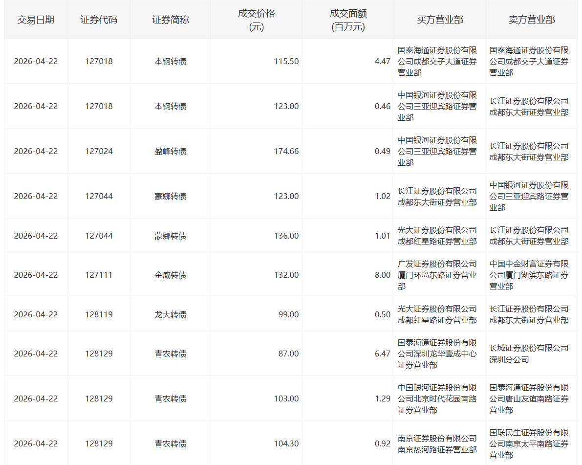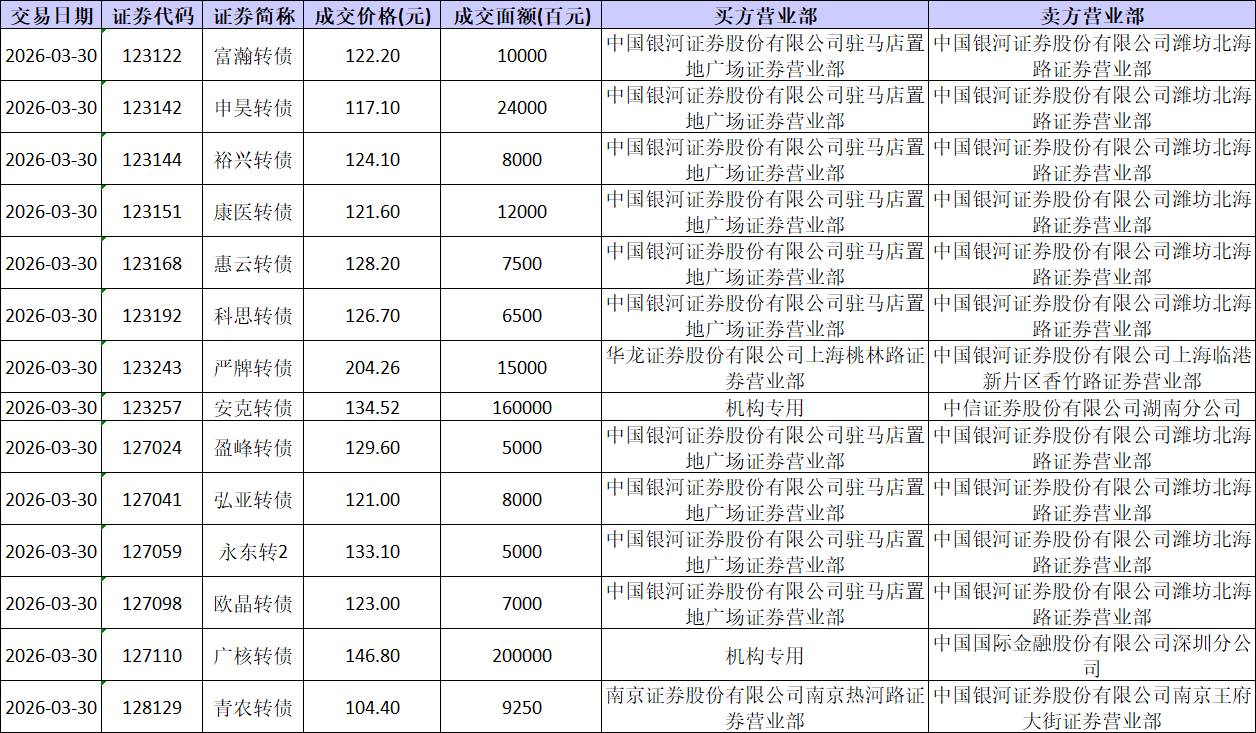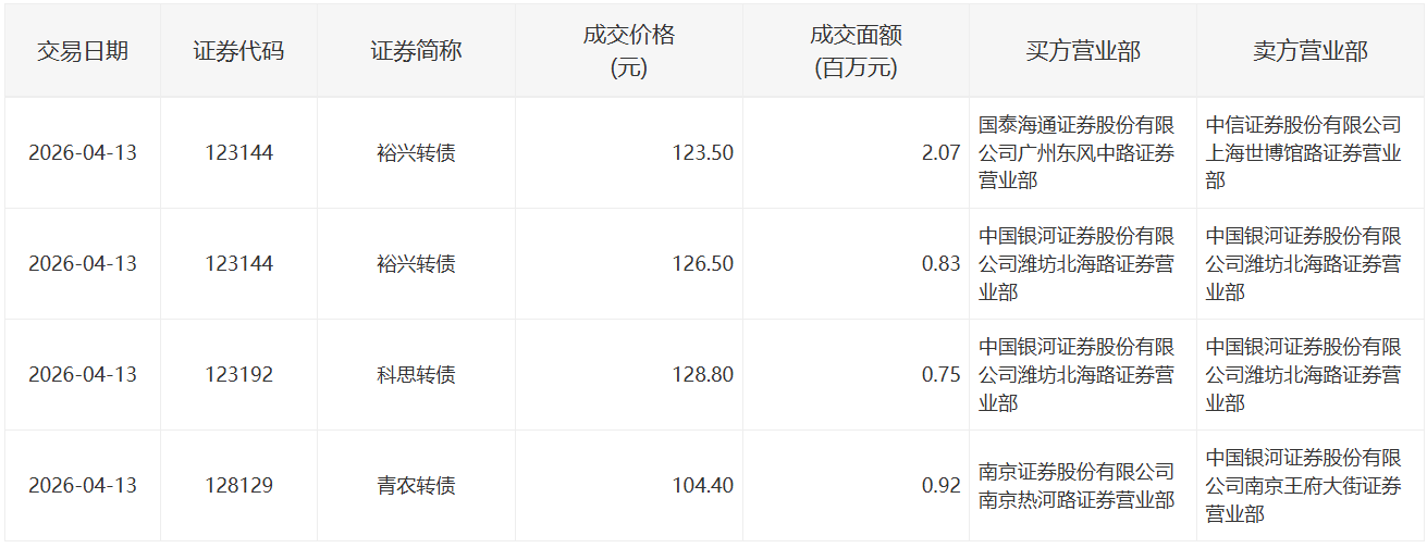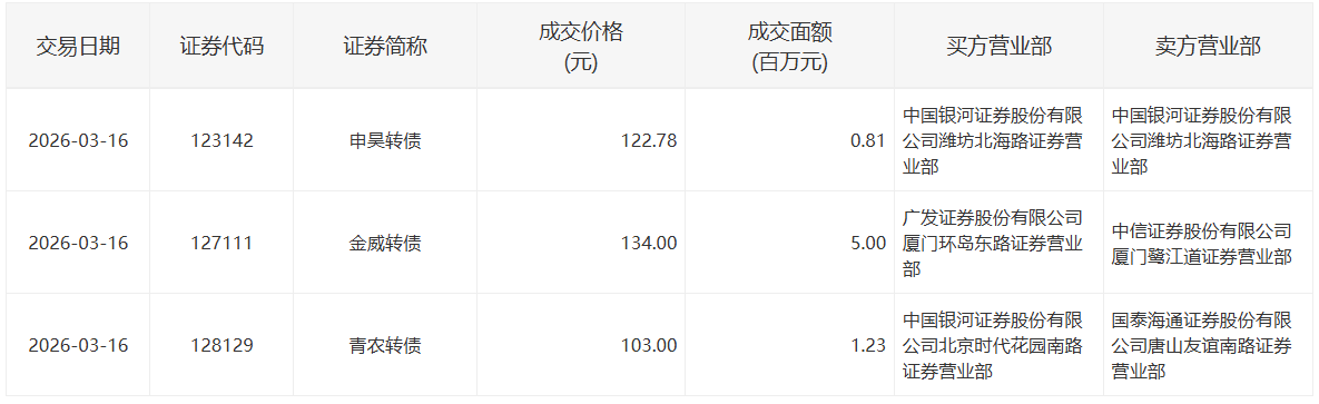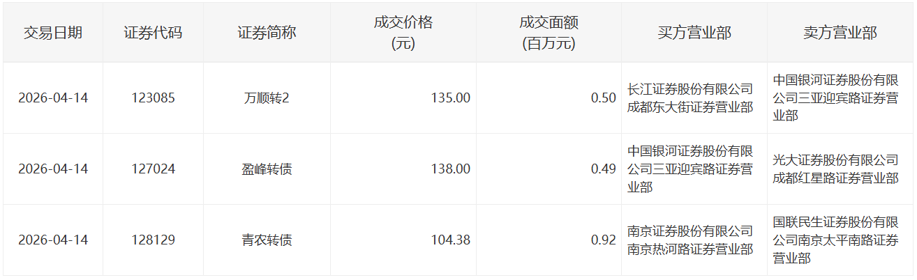 2022年5月13日,深交所3支可转债有大宗交易。