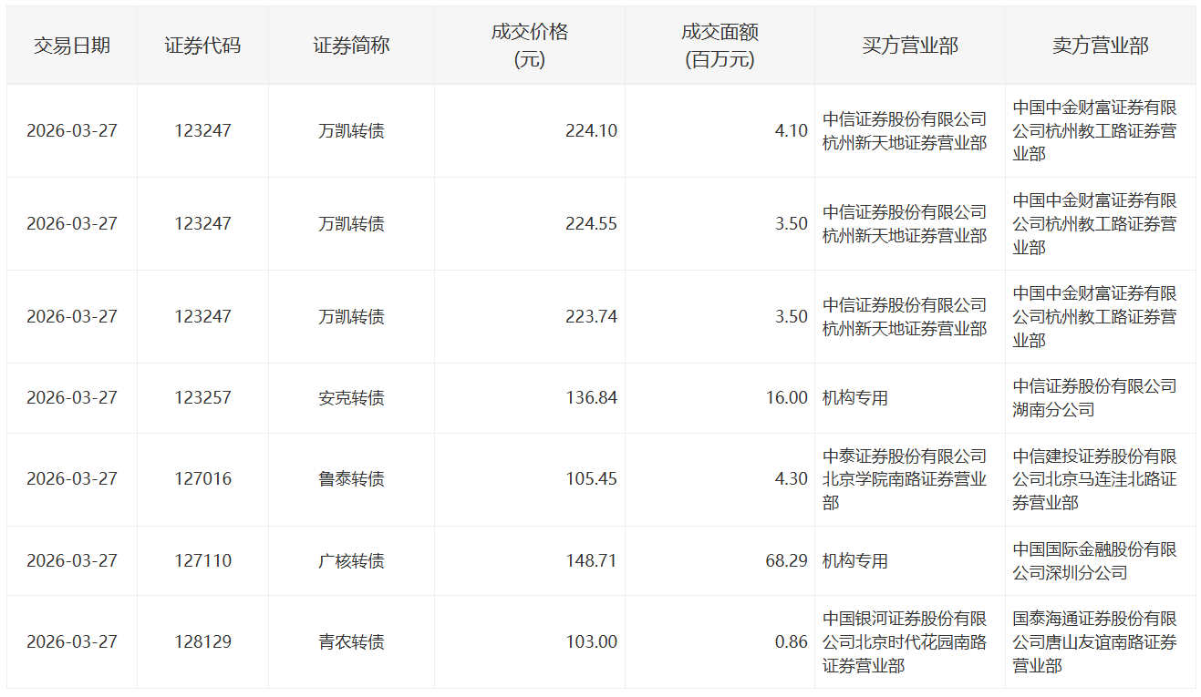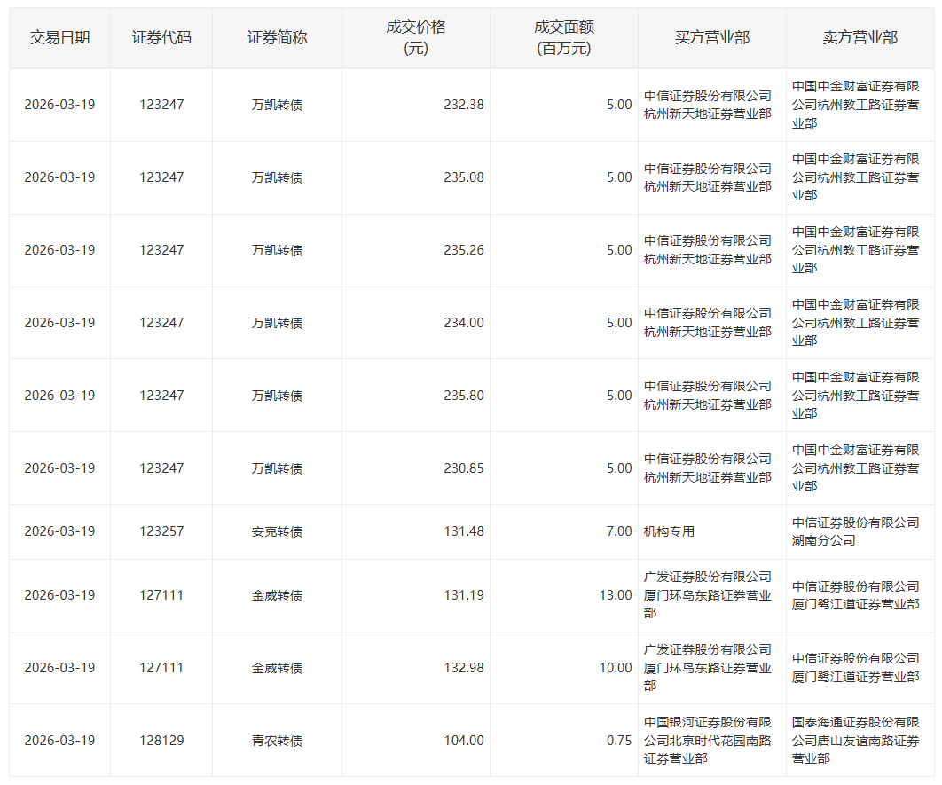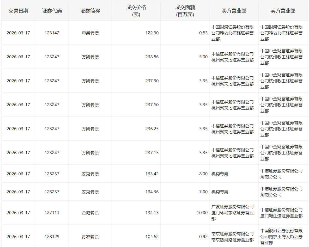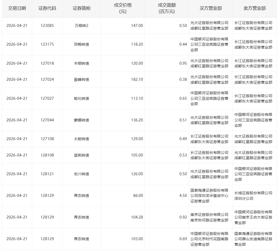 2022年5月13日,深交所3支可转债有大宗交易。