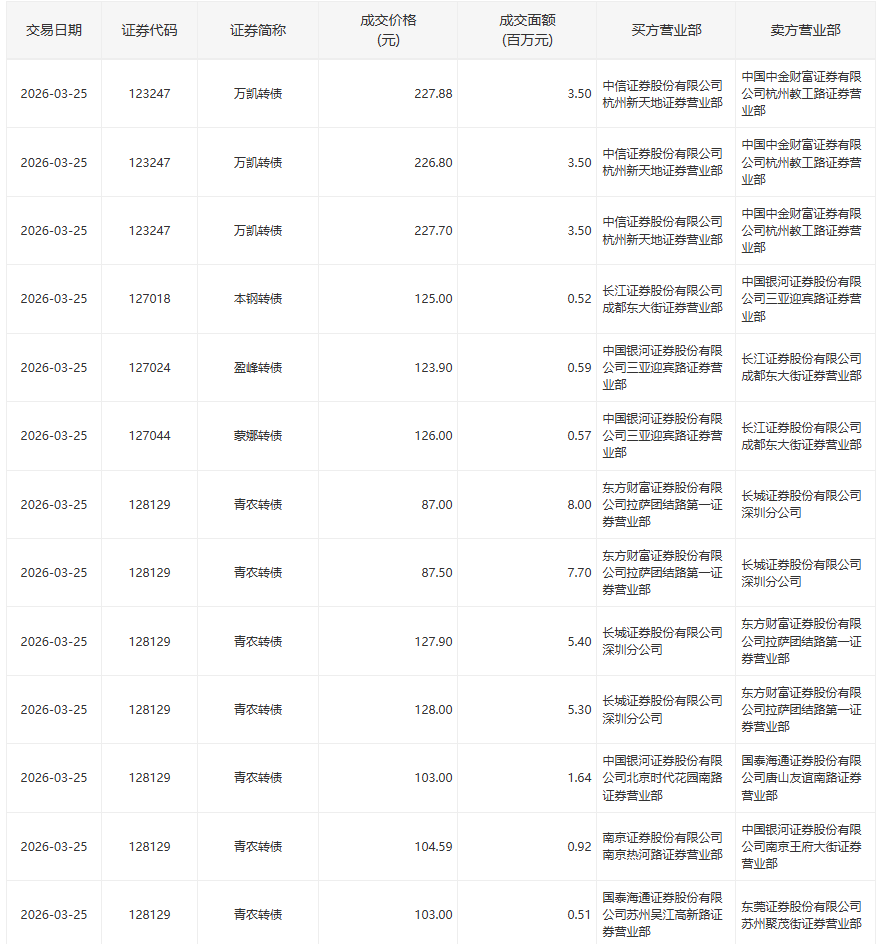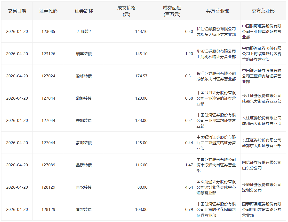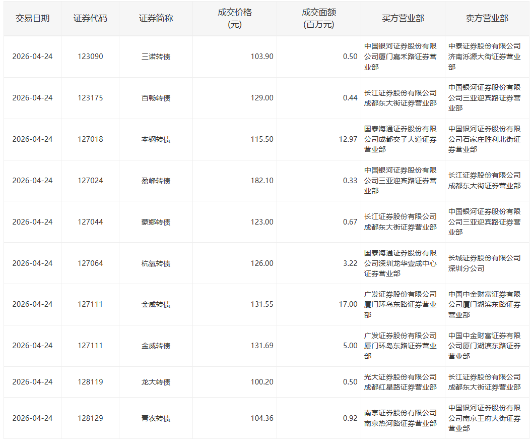 川恒转债,成交价格121.10元,25万张,成交金额3,027.50万元。