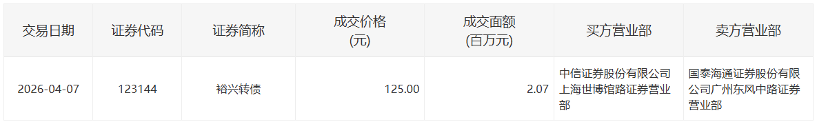 中装转2,成交价格113.30元,0.60万张,成交金额67.98万元。