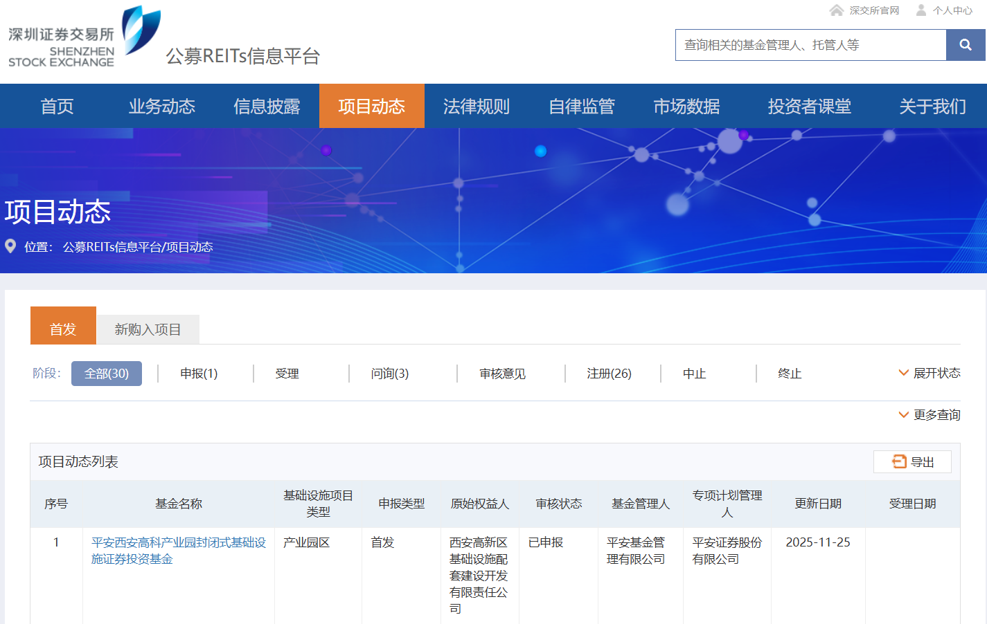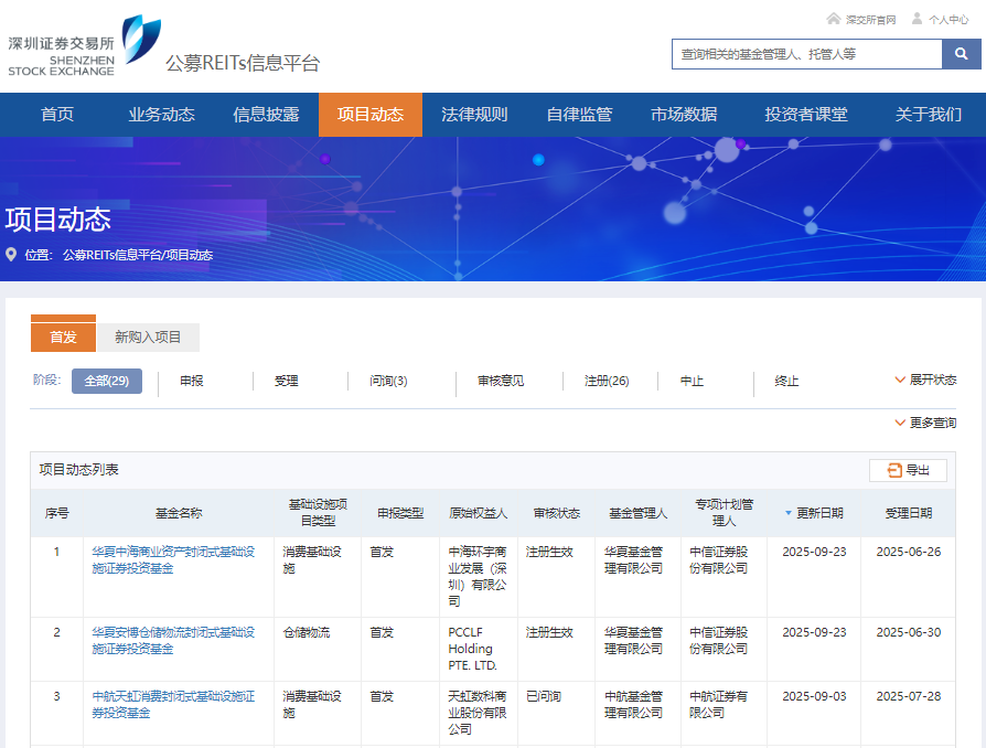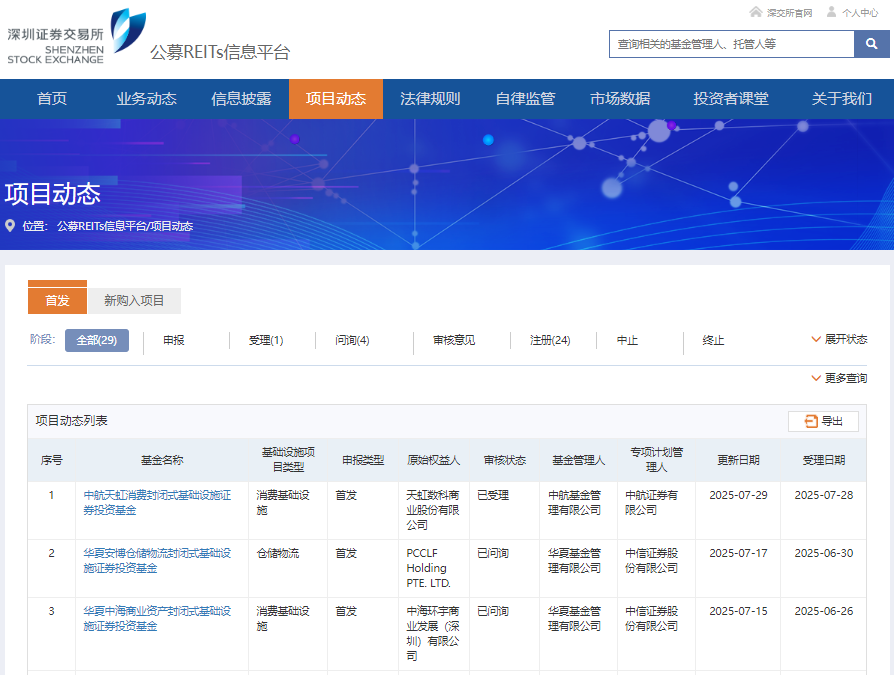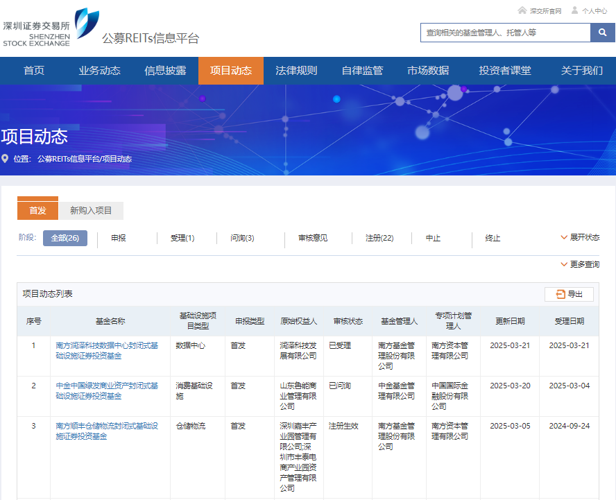 深圳证券交易所有6个公募REITs:5个已上市交易、1个已问询。
