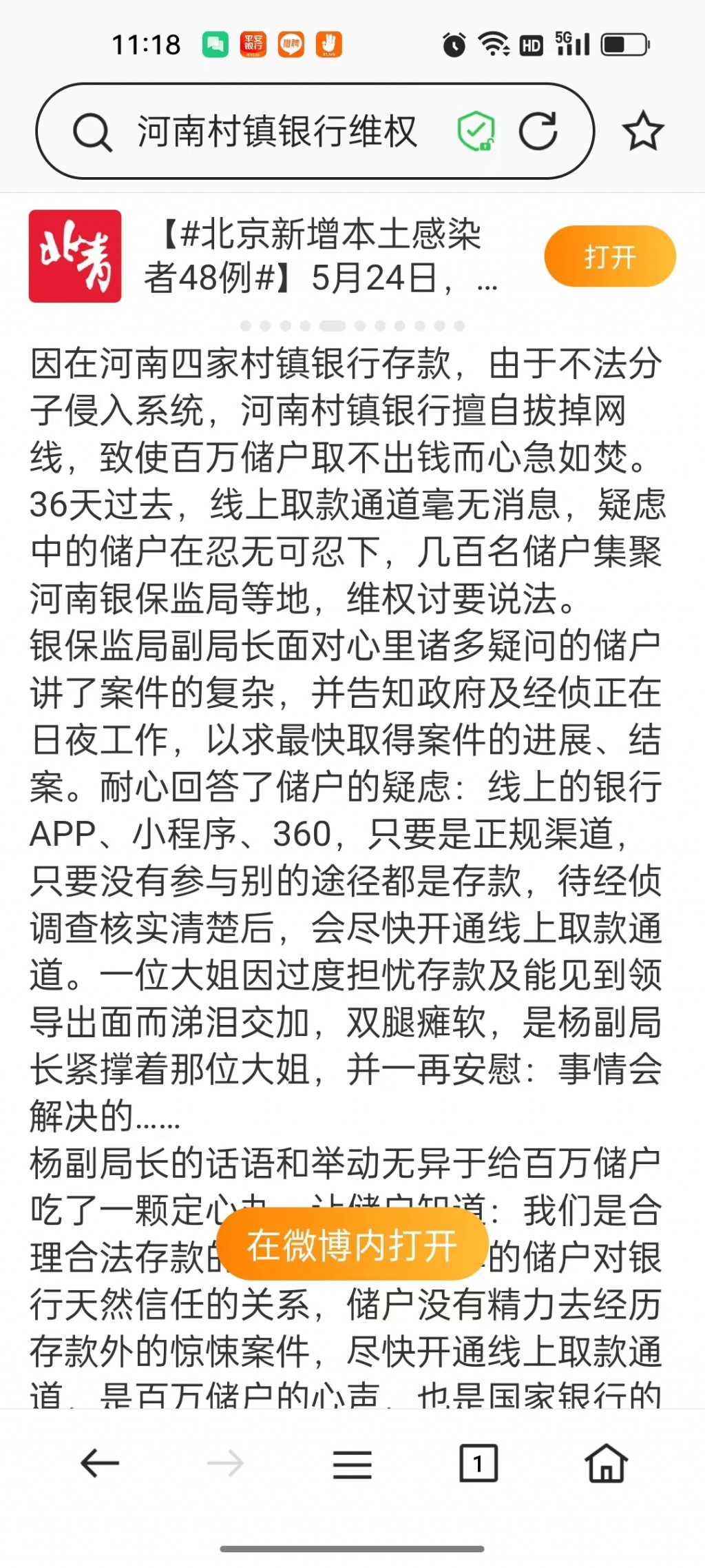 5月18日: 4家村镇银行股东河南新财富集团通过内外勾结、利用第三方平台以及资金掮客等吸收公众资金,涉嫌违法犯罪,公安机关已立案调查。针对这一事件,银保监会与人民银行持续关注,责成河南银保监局和人民银行郑州中心支行切实履行属地监管职责,密切配合地方党委政府和相关部门稳妥处置。目前4家村镇银行营业网点存取款业务正常开展,凡依法合规办理的业务均受到国家法律保护。银保监会与人民银行将密切配合地方党委政府和相关部门,严惩金融犯罪,依法保护广大金融消费者合法权益。问题:是银行还是股东?配合处理?哪类算依法合规的?怎么保护?注意看也没讲是银行,因为银行吸收公众资金/存款是合法的,也没有讲吸收的是存款。有人讲这些实际上是吹风,很多名词都有不同的解释法。导致了成规模的维权行为,因为没有反馈可能就会按非法吸收公众资金定性。 追回本金就会非常困难。