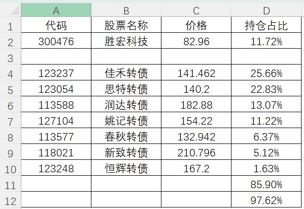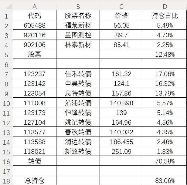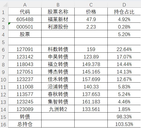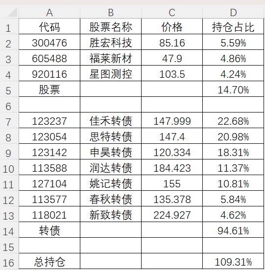 周初觉得涨太多,做了减仓,但后来加仓太早,目前持仓的转债大部分浮亏。