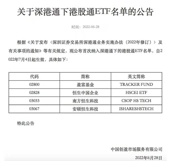 下一周就可以通过港股通买ETF了