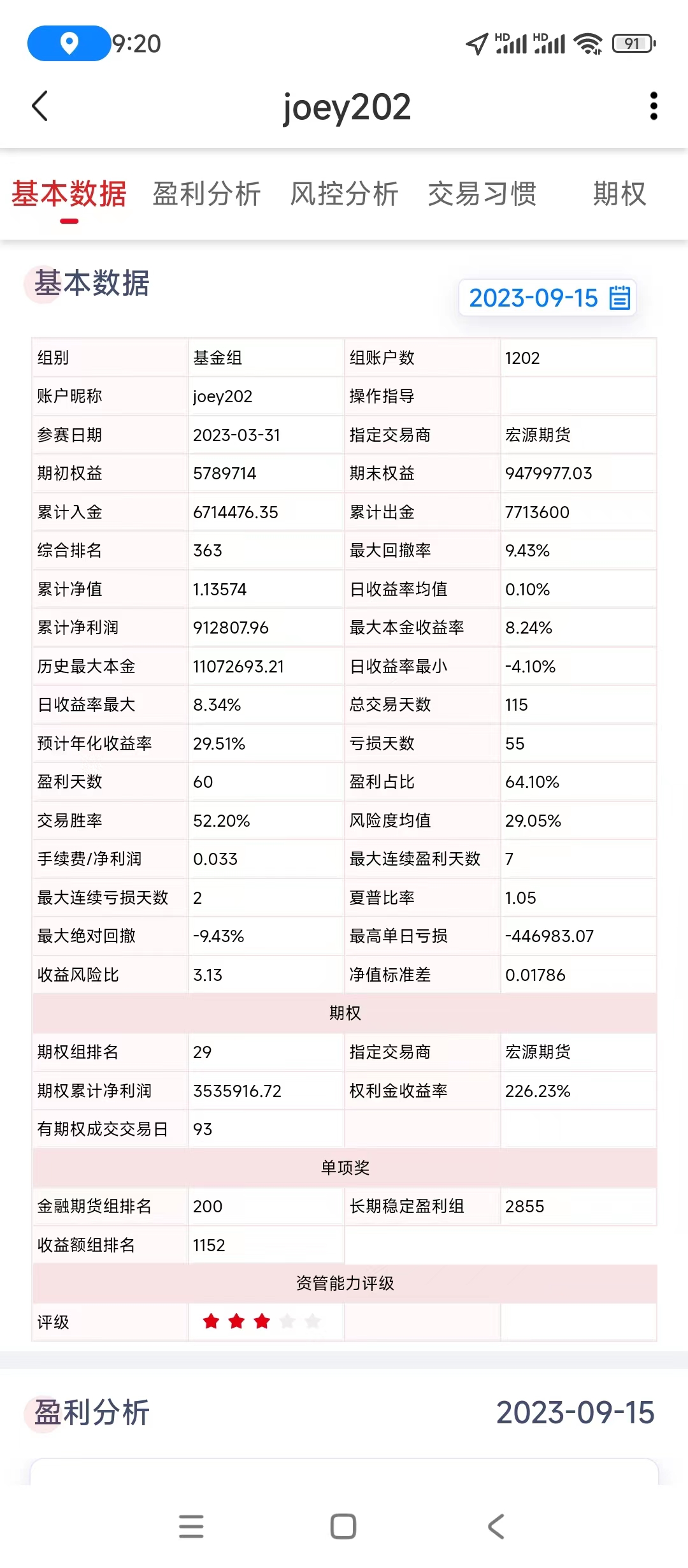期货日报实盘大赛结束,期权组27名2023.3.31-2023.9.28,六个月时间盈利358万。楼主厉害**。请教一下,本金大概多少呢?期权主要是做买方,还是卖方?手动执行还是自动化交易? 还在执行之前的 缺口必补策略吗?
