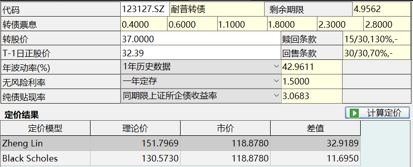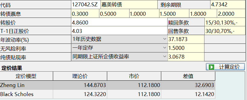 说明一下。我这里拟合的数据历史并不长,因为2017年以前的可转债数量太少,不适合用量化分析全市场可转债。但找了几个个别转债,定价是更低的,比如2014年的中银转债等等