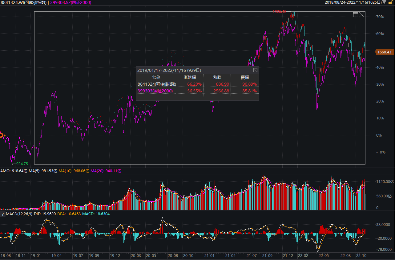 1.转债整体跑赢国证2000长期来看是肯定的。但幅度并不大,参见下图: