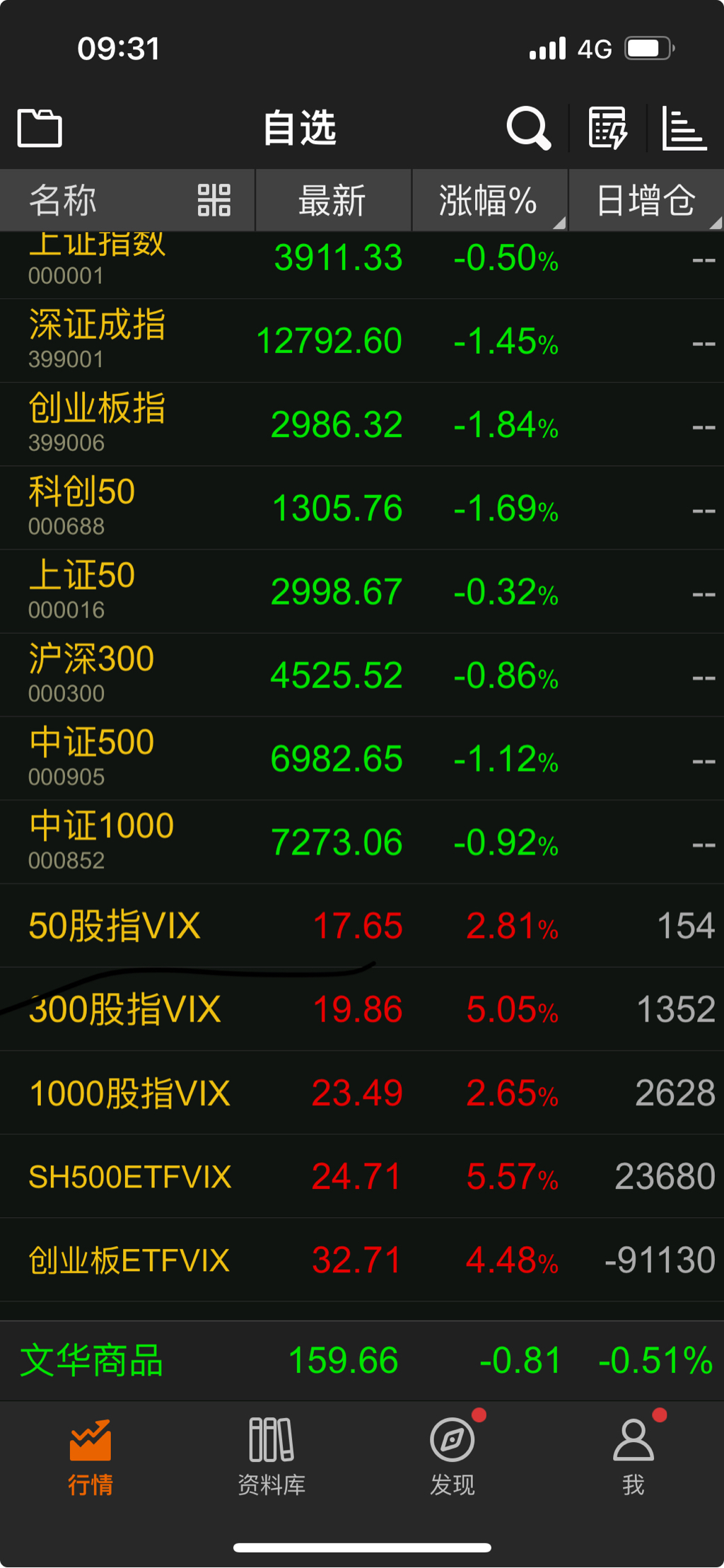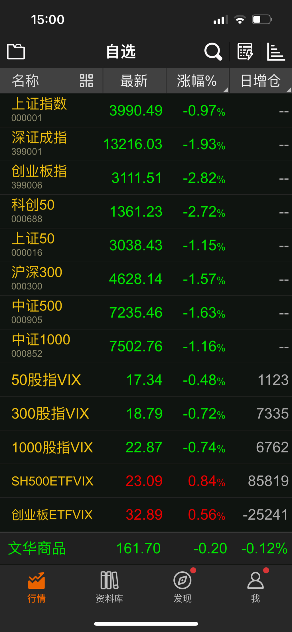 抛开情绪,好处是跌下去还有合约可以继续移仓,等下周看看有没有升波的机会。IO平值平移现在价差在70个点左右,期指略有贴水,VIX日线还是绿柱,尾盘有一点上升,下周等待更好的移仓机会。