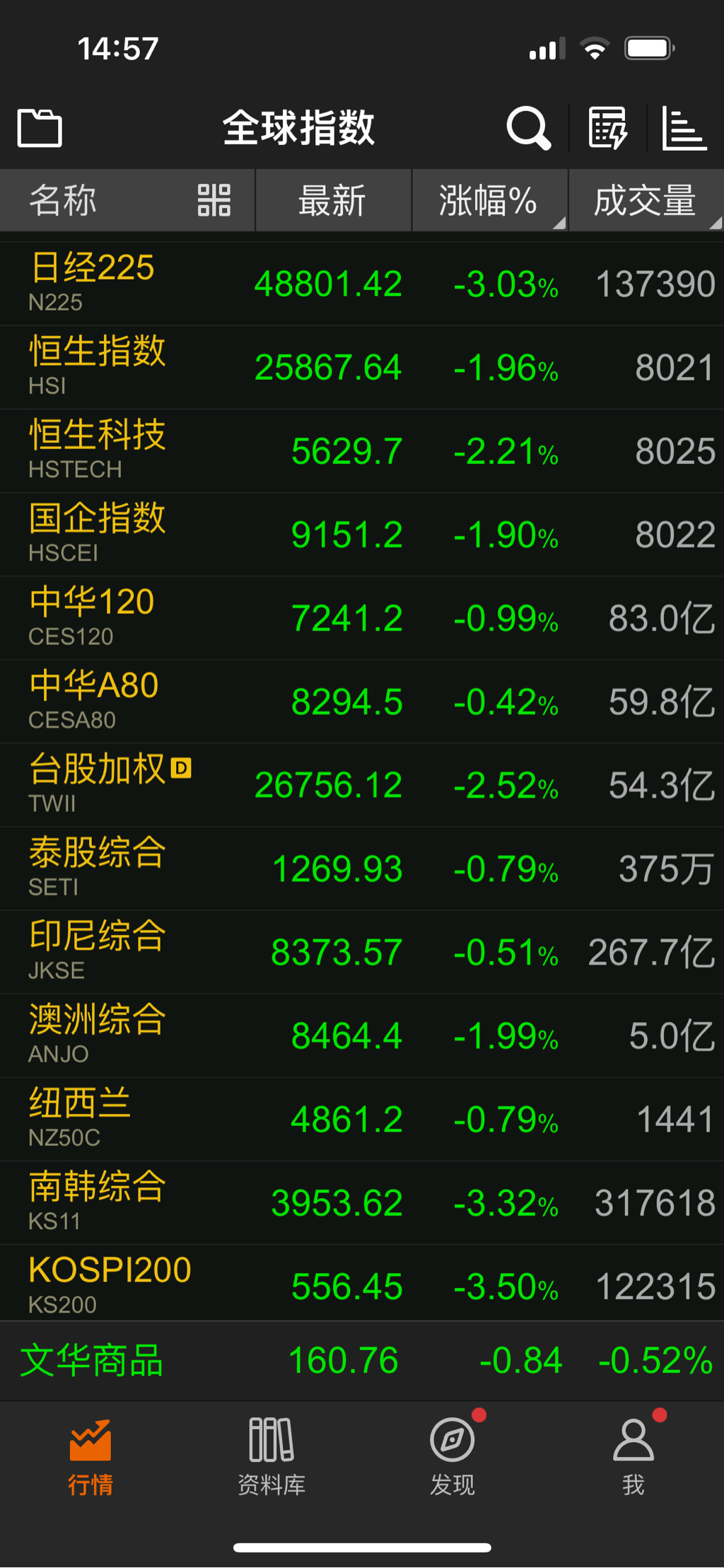 外围市场普跌,A股下午还是扛不住,又一次跌破4000点了。上午移仓的IO被套了,这下老实了,不用折腾调仓了,等待下一次上4000解套。恒生科技跌幅不小,创业板跟跌,日韩台澳都跌了不少。目前看美股股指期货基本企稳,今天就是受外围影响顺势调整,A股还算是强的了。美股如果不崩,A股受冲击也不会太大,晚上关注一下美股的消息。