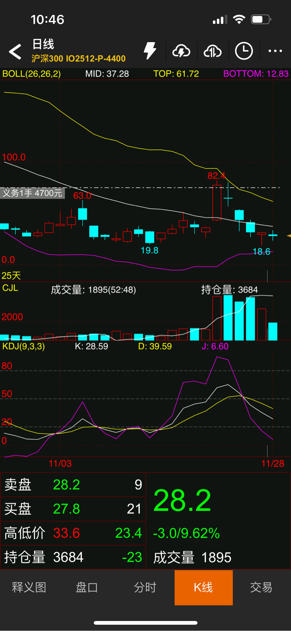 另外期权单卖沽是一个天然的高抛低吸的品种,都不用你费心盯盘做短线,前提是你愿意接货和止盈。就像今天,开盘看下跌我就加了一张IO卖沽4500,然后就来回帖了。可以当作年终总结了,明年还在4000点的话对期权卖方来说是很友好的事情,这是我的判断和展望。
