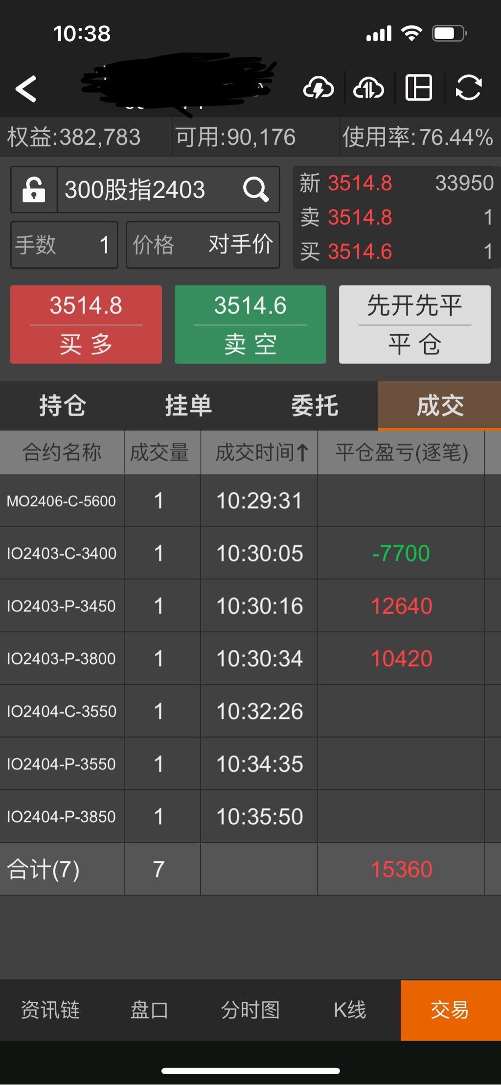 损益:都是按到期损益来估算收益,但是盘中损益变化受隐波影响大,我只用手机看盘,习惯就是先开一对观察仓位,然后看相对收益变化再决定要不要加仓。你放心,95%以上的交易你都会发现后面会有更好的交易机会,所以比例价差建仓不用急,慢慢买。
