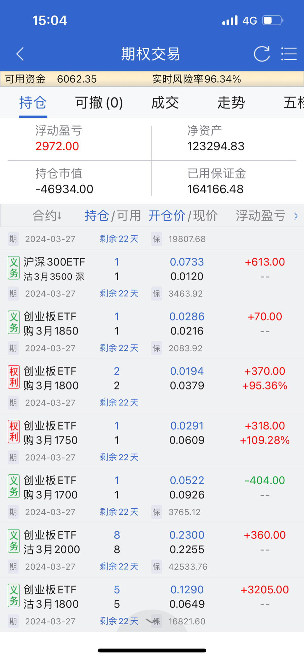 资金管理:在风云诡谲的资本市场,最重要的事情是生存。保证账户的安全,首先要有反脆弱的资金管理方案。为什么9债1购值得借鉴,这个就是杠铃法则的应用,大部分资金放在债券和固定收益品种中,小部分资金冒高风险博取高收益。实盘IO账户3张卖沽已经相当于接近100万的仓位,对应的必须要有现金支撑,否则杠杆就太高了。再强调一次,卖沽替代的是现货ETF仓位,没有保护的裸卖沽是风险很大的。而在期货和期权市场中,永远不要满仓梭哈,保留足够的现金应对极端行情是非常重要的。