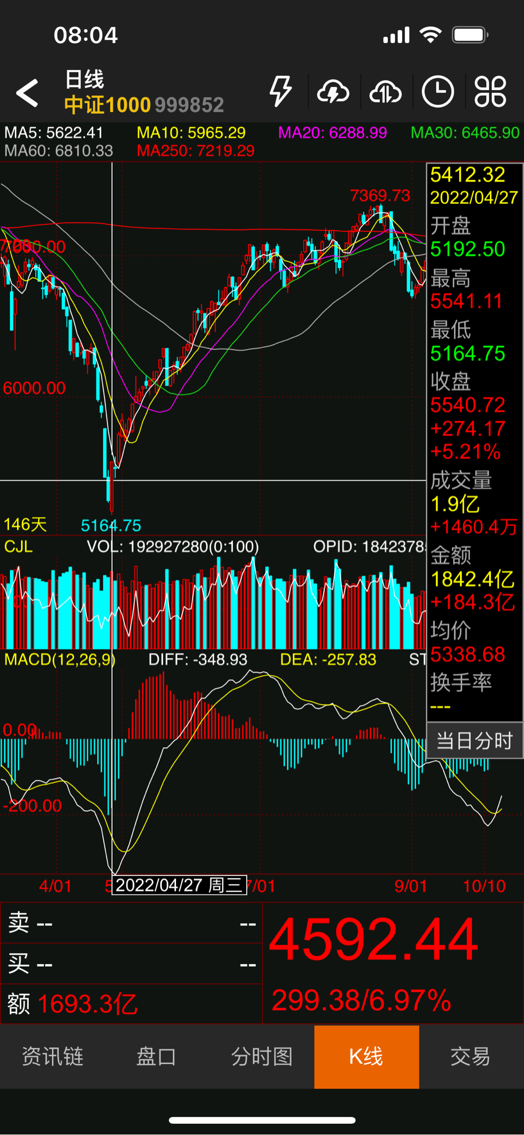 全市场加速下跌,上证指数2833.62最低点收盘,创业板1699.62,科创50是757.04历史新低,沪深300指数3229.08,中证1000指数5389.12。明天追加10万。