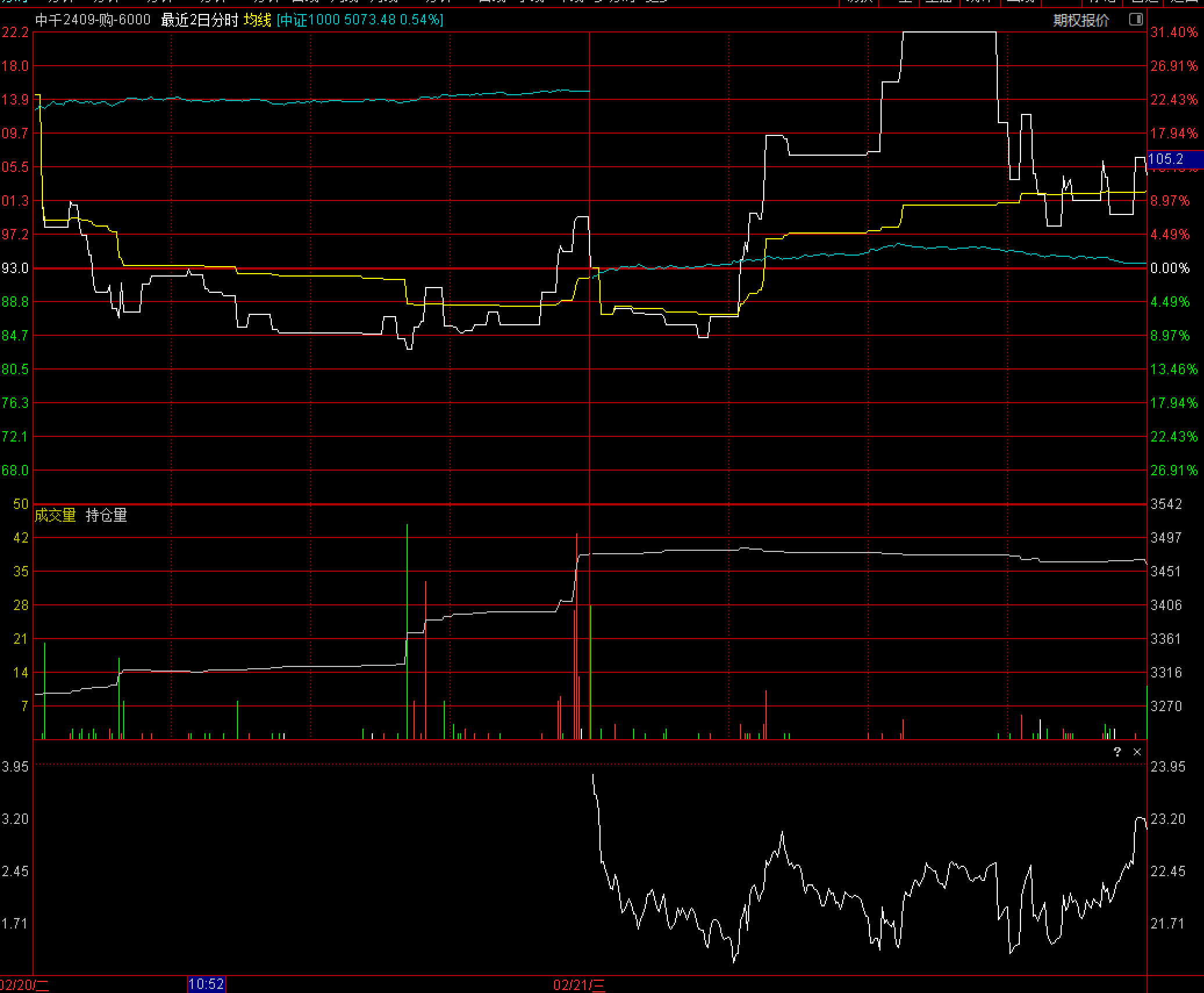 2.合成多头:卖沽买购实际上也是合成多头,因为贴水的存在,MO卖沽贵而买购便宜,加上贴水,这个卖沽买购组合是可以按月移仓还有贴水收益的。买购远月相当于兑现了一部分贴水的收益,而卖购近月就是备兑了,多头仓位足够才能不怕涨,卖购仓位控制一下,低位备兑不要拉满。