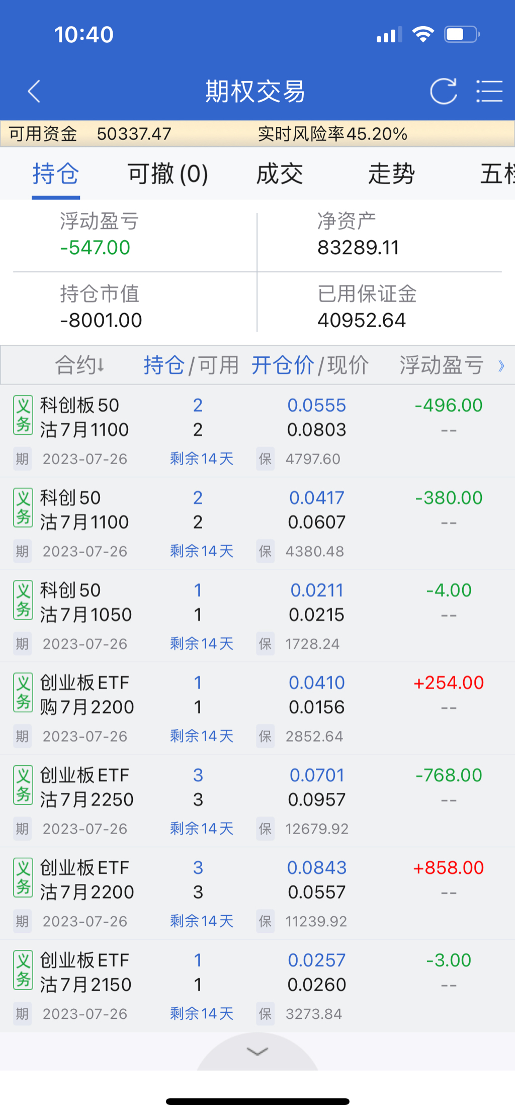 2.科创50的1100移仓到9月,是因为8月时间价值为负,这个是深度实值了,做方向。