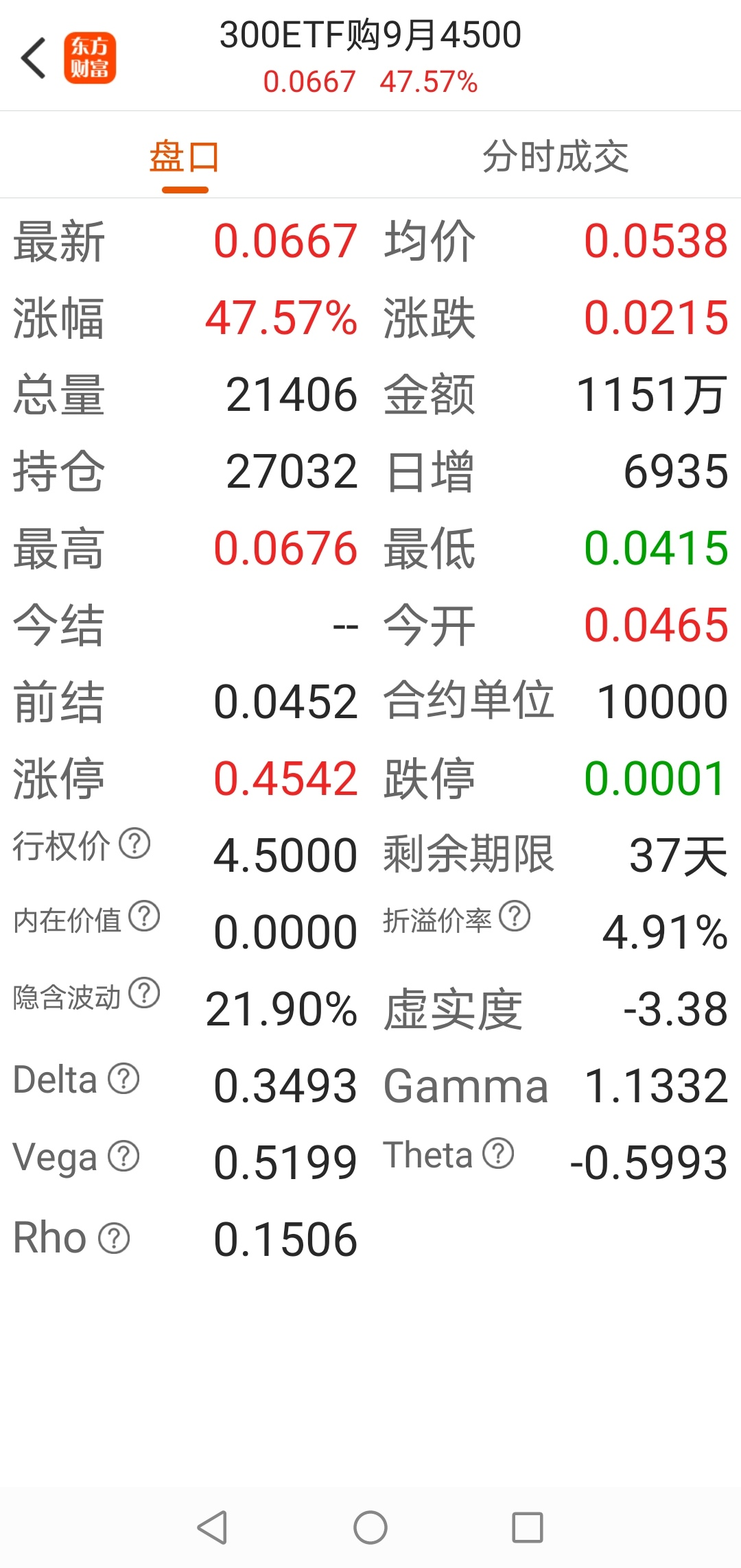 开盘时9月4.6合约德尔塔小于20%,现在4.7合约德尔塔小于20%,移仓慢了。