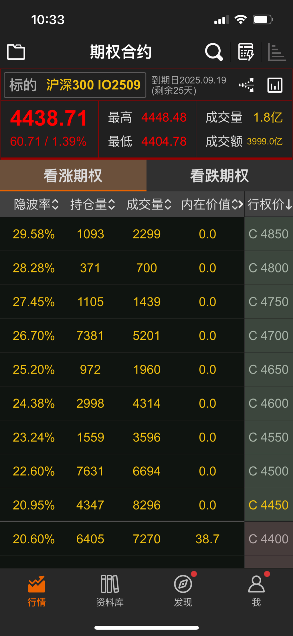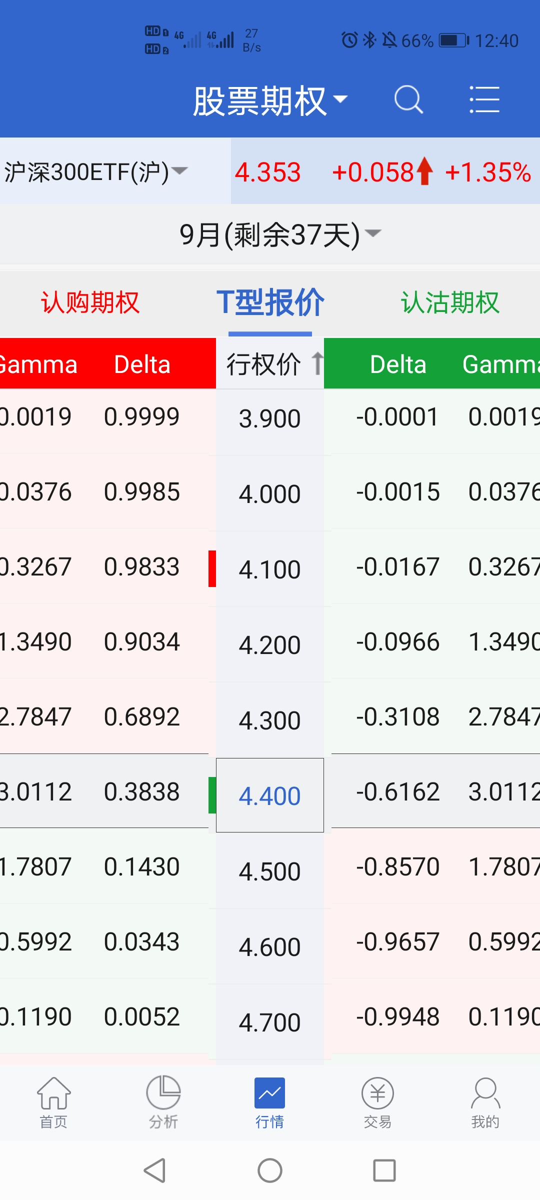 感觉是东财的准。510300的价格都4.353了,4.5购delta应该要大于0.3的。 移仓4.1,4.7吧,4.5的卖购执行价还是太低