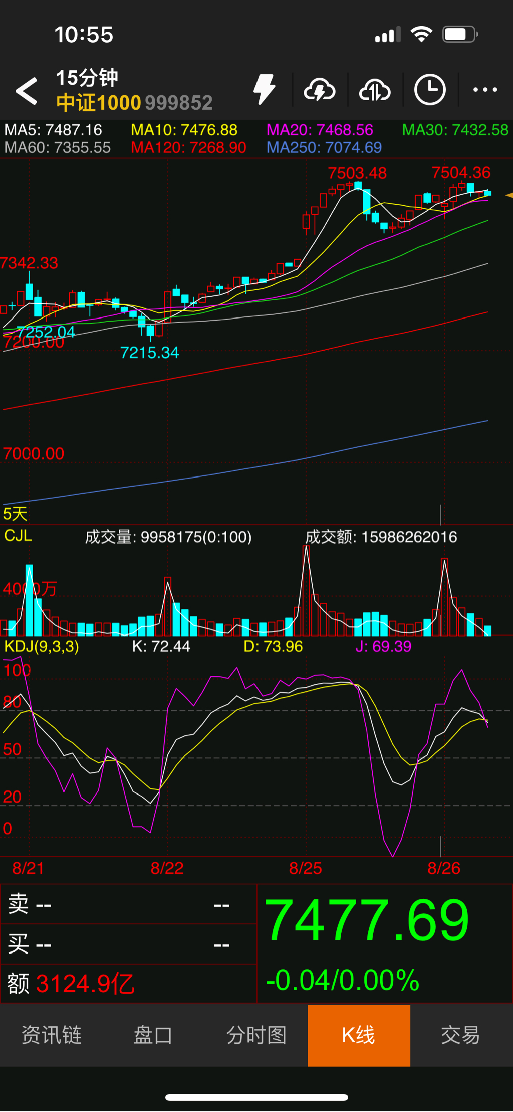 8000不确定能不能到或者什么时候到,如果8000以上愿意减仓备兑卖购现在可以逐步做起来了,卖购可以卖8000,分批卖就好。震荡不上8000就能有增强,回调也比只有IM等回撤好。大涨卖购有可能亏钱,但是IM就赚钱了,这个要能算明白再做。我是手机用文华看期权和期货行情,价差和贴水不定时看一下就知道了,我不盯盘的。要是有系统做价差和贴水的监控还是要用电脑。