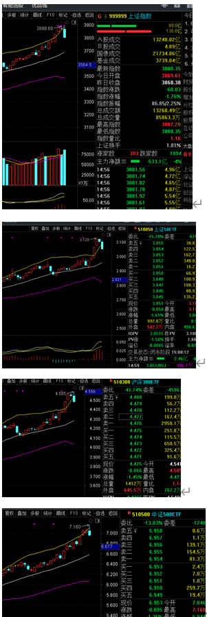 后续如果要到布林中轨,上证大概明天大概在3700的位置,510300要到4.3,510500要到6.65