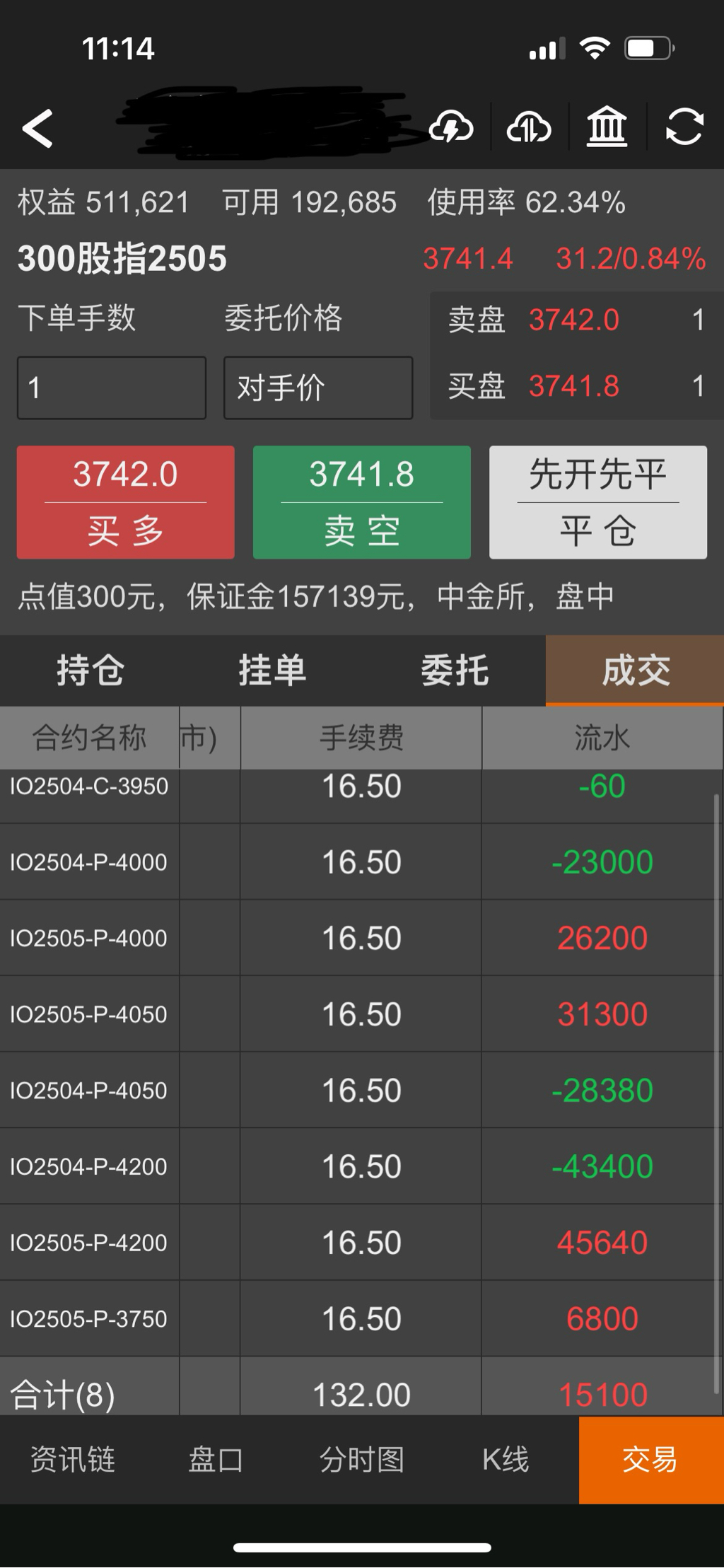 移仓,流水15100元,3800以下,低位低波不开卖购了,改卖沽3750。这里值得注意的是IF贴水也不小,那么对卖沽移仓来说比较有利。国家队维稳以300为主,那么持有吃贴水就是可行的选择。涨上去了再考虑卖购。