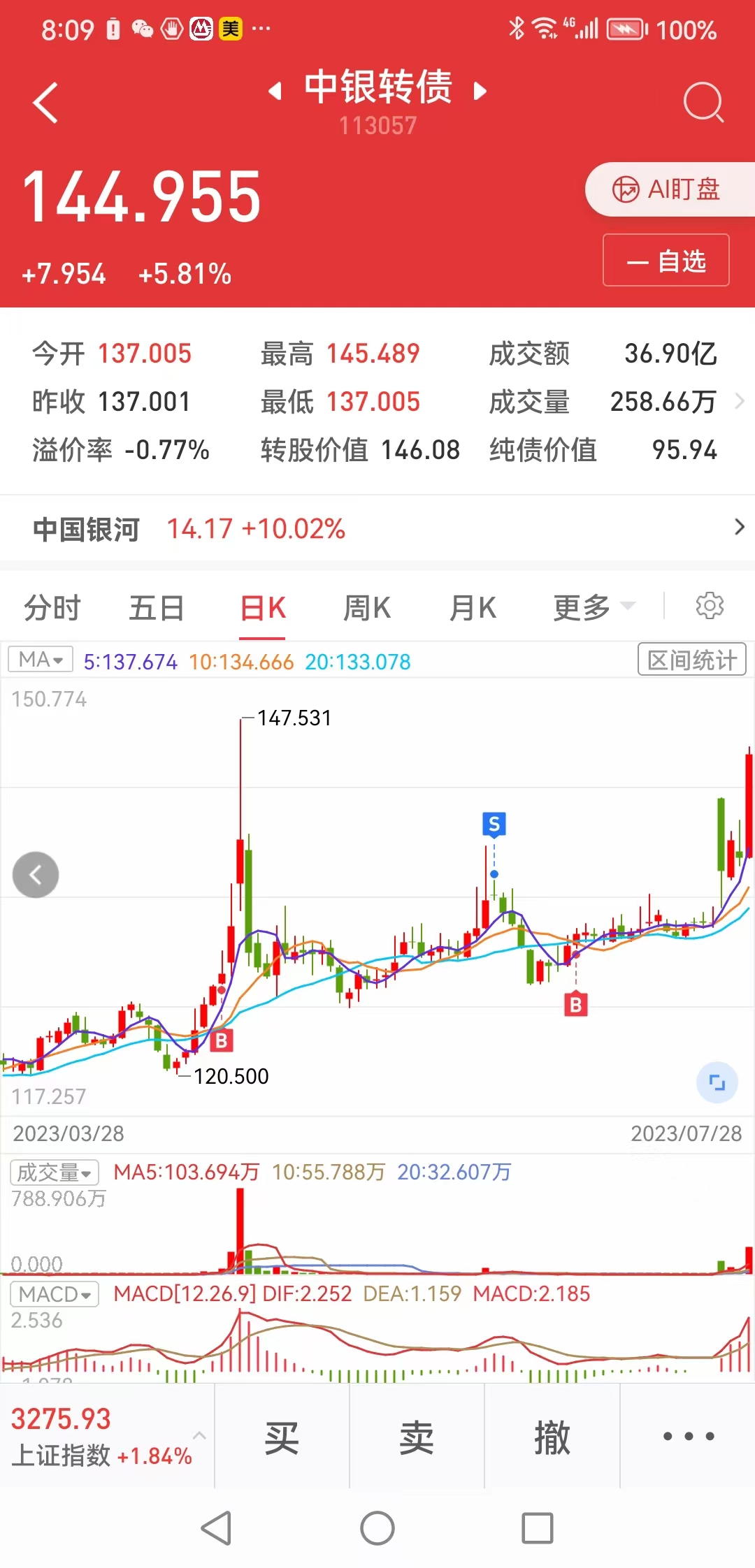 其实周五卖出并不是原始的量化策略里的,而是更加计算指标来的,长久物流正股4天3涨停,已经严重偏离均线,乖离需要得到修正,而且在上涨的时候积累的那么多获利盘,在今天这样的行情下一有风吹草动肯定是夺路而走。我自己的持仓量不小,真的到了暴跌的时候再卖出肯定卖不到一个好价格的。现在这个结果我已经相当满意了。
