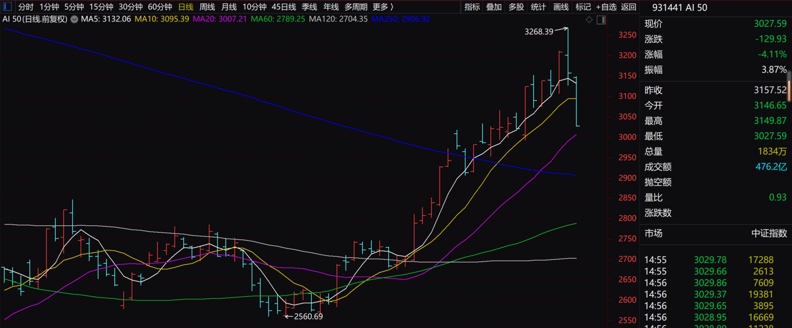今天主流宽基指数领跌的科创50跌0.95%、创业板指跌0.91%;跌幅最新的北证50跌0.33%、中证500跌0.57%。