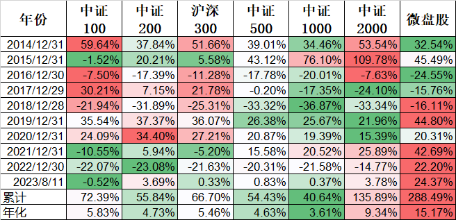 当然我们在比较指数和指数增强的时候应该针对同一个指数来同口径比较。我们看几个主流的指数: