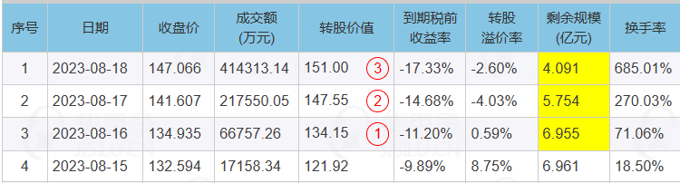 今天495只可转债平均上涨0.37%,对应个股平均上涨0.38%,42只大于170元的可转债平均大涨2.20%,但正股平均只上涨了0.66%,看明细,天铁转债今天正股下跌1.56%,可转债大涨7.71%,413.6元的高价对应113.35%的溢价率;超达转债今天正股下跌0.67%,可转债大涨14.40%,286元的高价对应325.28%的溢价率。除了柚子和不明真相的群众,平常人是不会去买这些妖债的。