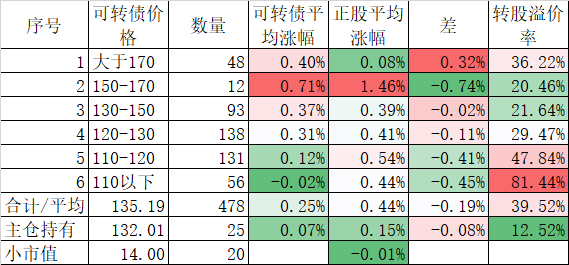 目前主要的仓位还是在可转债,小市值策略今年的表现和我的可转债差不多,到目前为止并没有什么超额收益。可转债还是采用了保守的新版130阈值的策略,只不过在因子上根据最近的表现做了一点修正,另外最大的变化就是如果原来的可转债价格涨了超过130元,如果排名还是在前面的,那么轮动的时候并不轮出而还是保留,高价的表现还是比低价好一些,只不过回撤和波动也可能大一点。