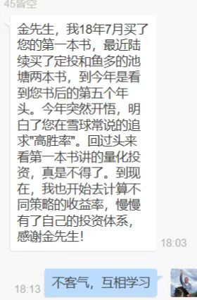 中国传统的观念,为了达到一个最终目标,必须吃的苦中苦。我现在想的是不仅要结果好,而且过程也要好,甚至为了过程好,宁可降低点结果的目标。这种大幅度回撤30%甚至更多,最后即使获得一个非常高的收益,只能算赌博不能算投资。