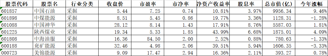 7家采掘业里,很明显市净率最低的中国石油今年涨的最好,虽然不是线性的,但今年的涨幅和市净率之间的相关度高达-43.43%。