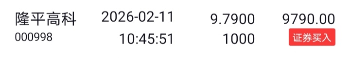 隆平高科买入1格。 2、脉冲交易