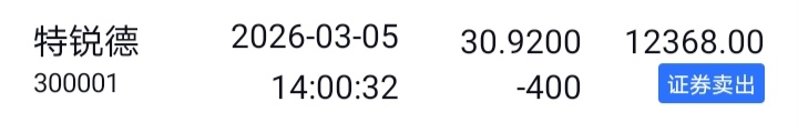 2)清仓特锐德,盈利1K;