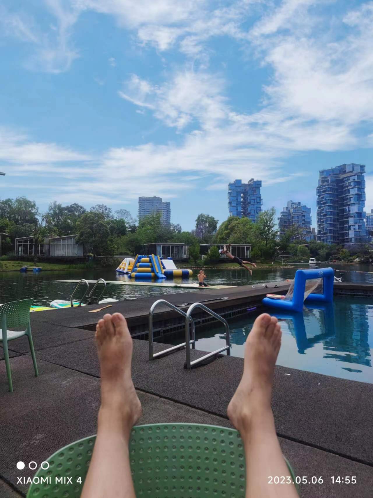 上周六股民放假,天气也不错,我又一个人去麓湖放野玩水了。不出意外的是我又包场了,出乎我意外的是两名救生员也下了水,而且比我玩得更high。这里的环境目前还不错,但想要长期保持的话我觉得难度会很大。那么到底谁才真正享受了这样的环境,是花费几千万买了对面的清水别墅但在环境巅峰期没住过一天的大佬,是偶尔花费一百多来玩但很难买得起这里房子的我,还是天天都能挣一百多还能随便玩但肯定买不起这里房子的救生员呢?我躺在暖洋洋的水中桨板上思考了一下这个问题,居然不知不觉就睡着了。