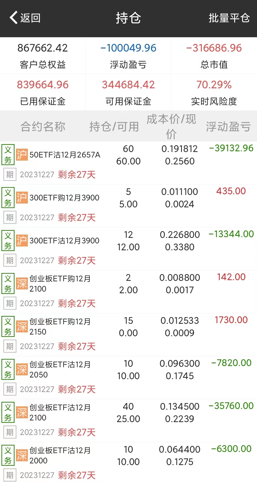 1、专做期权七八年了,认识的人很多,留下来的很少,买方就更少了,但是也有少数买卖都能持续盈利的。2、不是很推荐给定策略,再做优化,期权自带杠杆,市场变幻莫测,如果有简单稳定的策略,那大家都能赚钱了,实际上,没有能适应所有行情的市场。楼主对市场跟踪不好,脱节严重,其实期权中突破概率很低。3、买方的要求是,准确跟踪好上涨和下跌的波段,一般人没这天赋,吃一波就跑就行了。卖方选择标的,50和300波动小...做了一段时间,觉得你说得对。比如有人推荐所谓的偏多双卖,,,其实就是一种先入为主的模式。这个模式在现在的行情下就是错的。其实应该是偏空双卖还好一点。