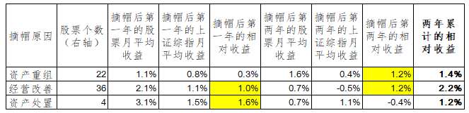 以前的摘帽,本质上就是时间确定性的小钱,超额来自于轮动以及天然的高低切。以前有一半的ST在2月和3月披露年报,上海年报后5个工作日摘帽,深圳年报后10个工作日,到3月底的时候已经轮动两轮了。单标的的作用不大,轮动创造超额收益。