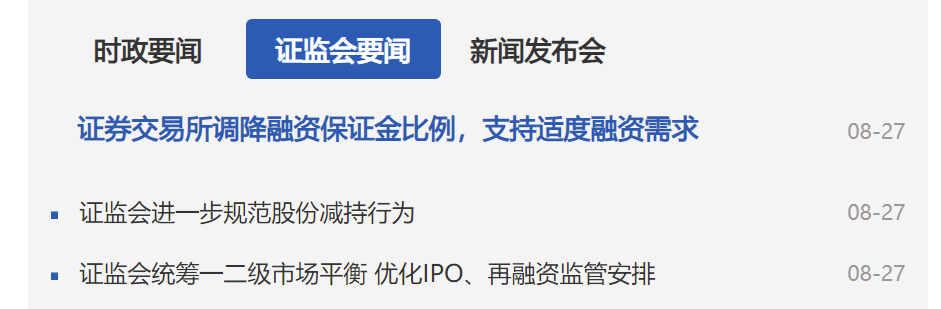 但其实让我更惊讶的还是两融降保证金,怎么说呢,这条在证监会首页里,放在了3个政策的第一条,标蓝加粗十分醒目(也可能是偶然)。