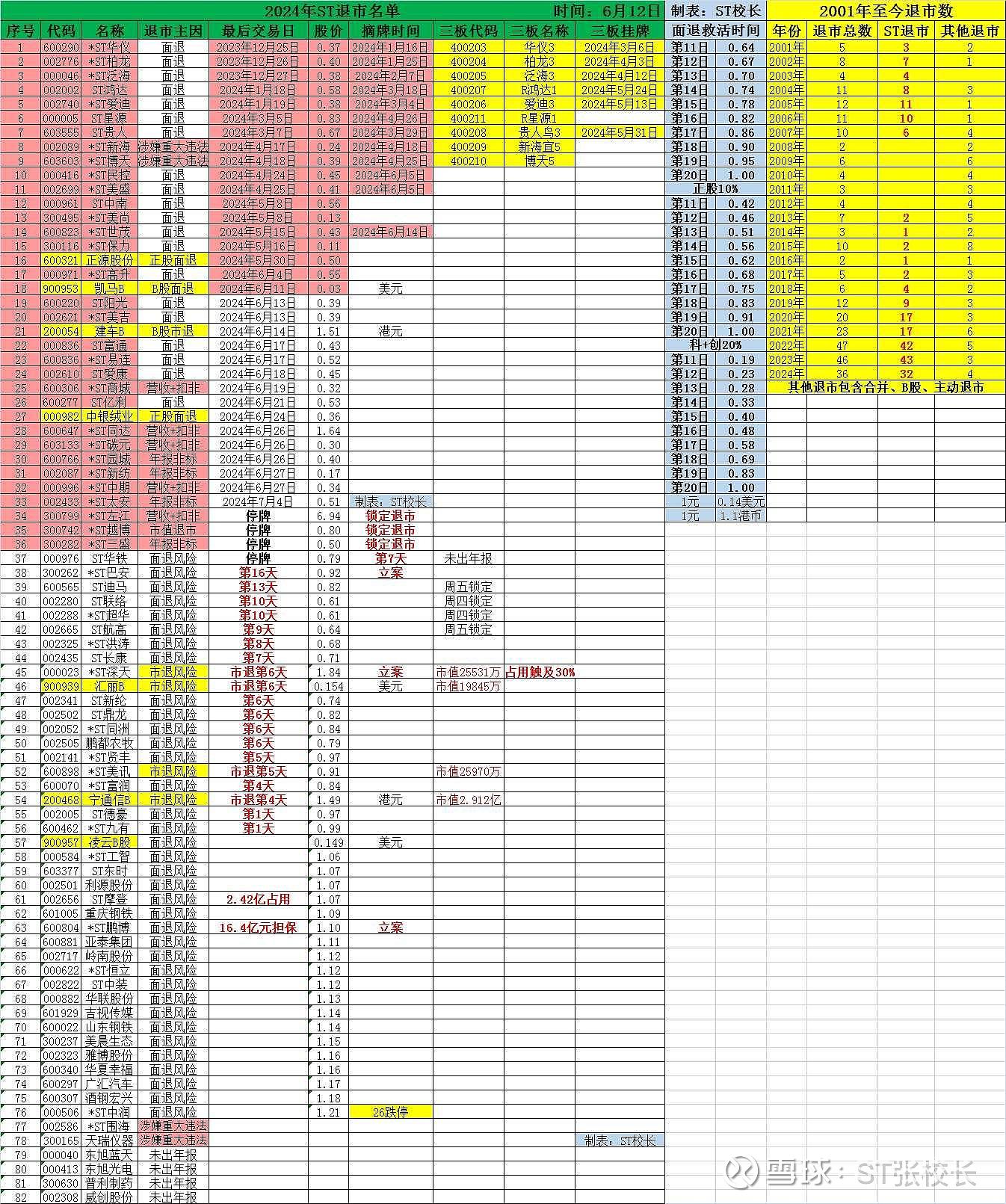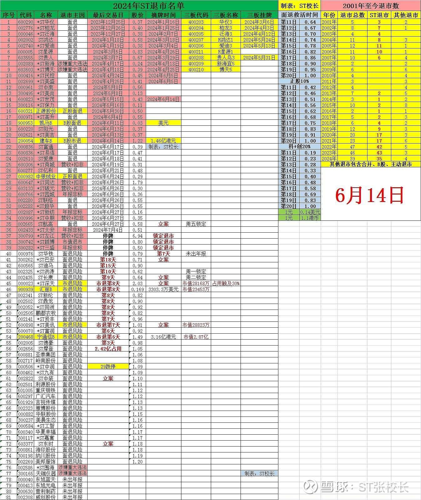 贴上雪球ST张校长的统计,目前看到的ST最权威的数据整理专家。