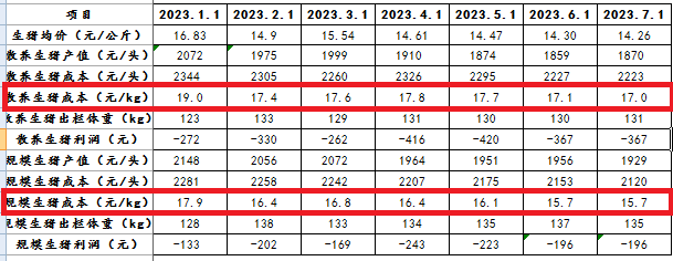 其实也就意味着养猪这个行业现在的平均成本水平就是17+