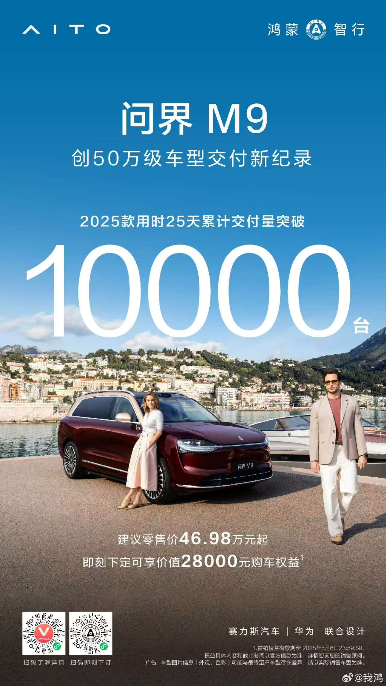 另外,今天官方发布了M9实现了25天交付1万台,应该是所有品牌从发布会到交付的新记录。