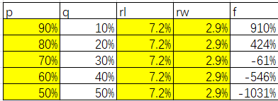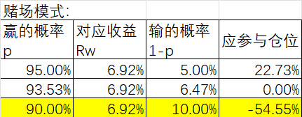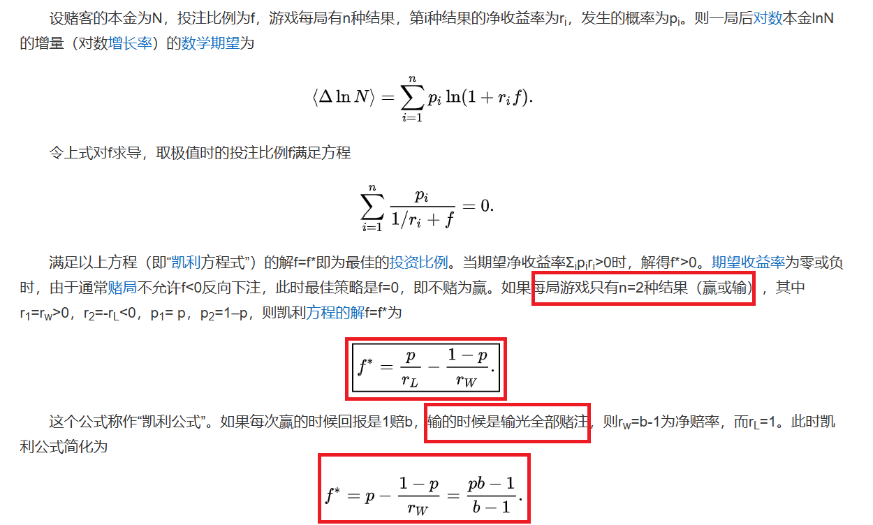 本人数学学的也不好,高数不及格的水平,投资更是小学生的水平,就是对赌博游戏有一点点研究。以下内容是个人臆想的观点,完全没有科学依据。我觉得应用凯利公式来计算投资行为是不可取的。我认为计算投资相关的公式不能缺少时间(t)维度相关的系数。凯利公式发明时是应用于是可以玩无数次的赌博游戏,隐含数据为投资周期t为0。真正的投资比例公式应该是原版凯利公式再乘以一个f(x)的t次方。因为赌博类游戏的t近似于0...