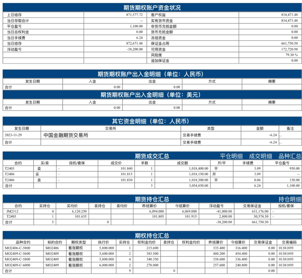 今天 IM2312涨 1.95%,而我的市值权益涨了 12.99%,按这个比例,6.66 倍杠杆吧。