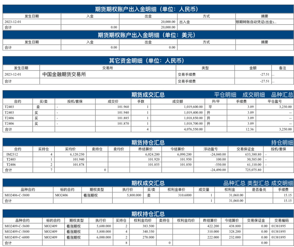 今天 509 的价格 平了一张 MO2406-C-5600。成本是 328.60,扣除手续费,赚了18009.7。你搞中证1000指数期权,我搞50ETF期权,预祝大家一起暴富。主要是中证1000一张对应市值高达100万,还是50ETF这样的小金额适合我。