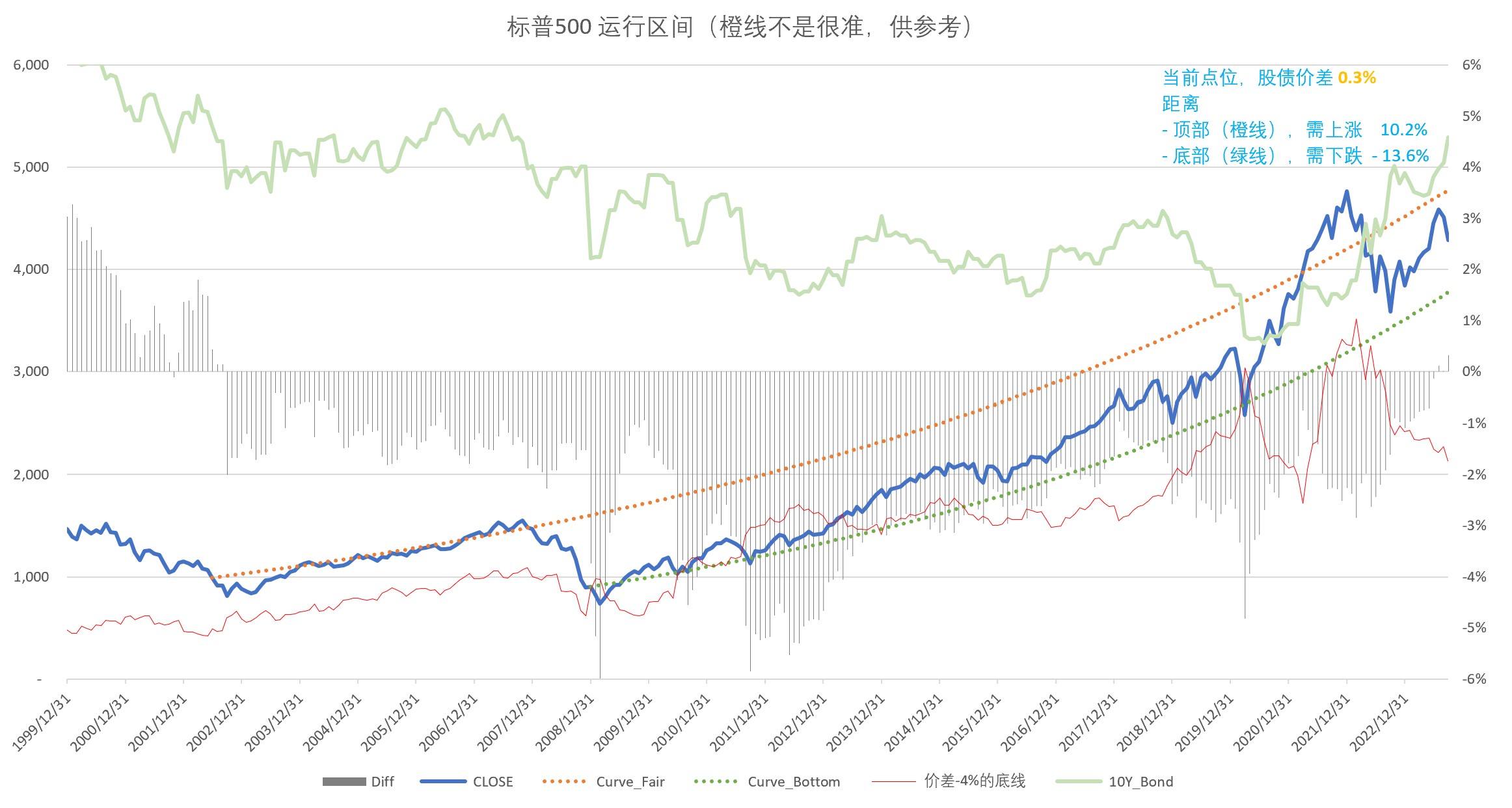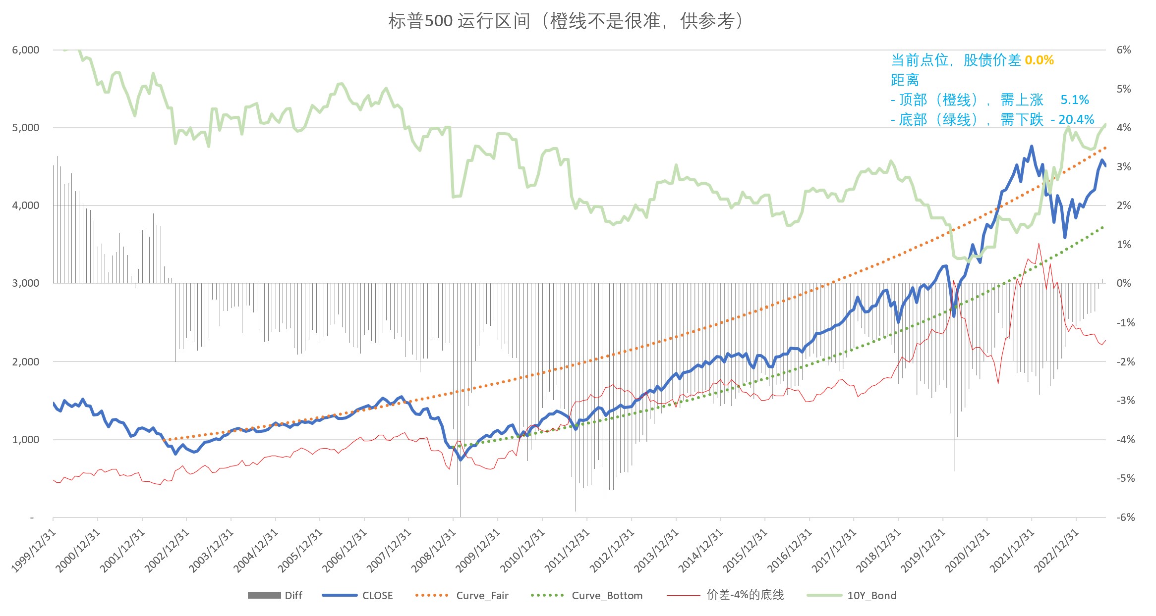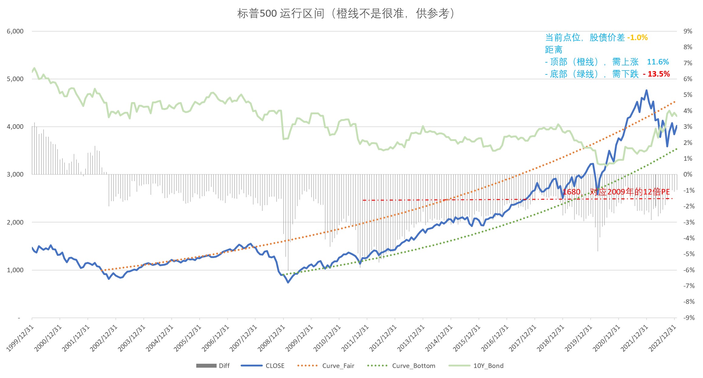 1、美股:相当鸡肋。在长期通道的中等水平;但股债价差只有 -0.8%,安全边际不高(第1张图)