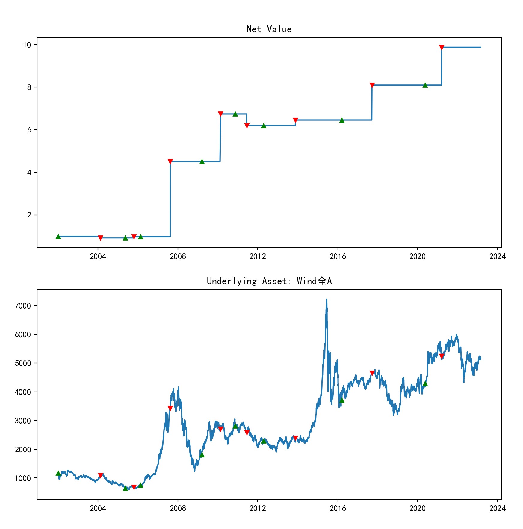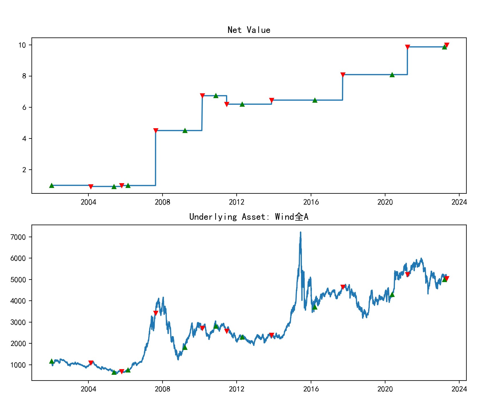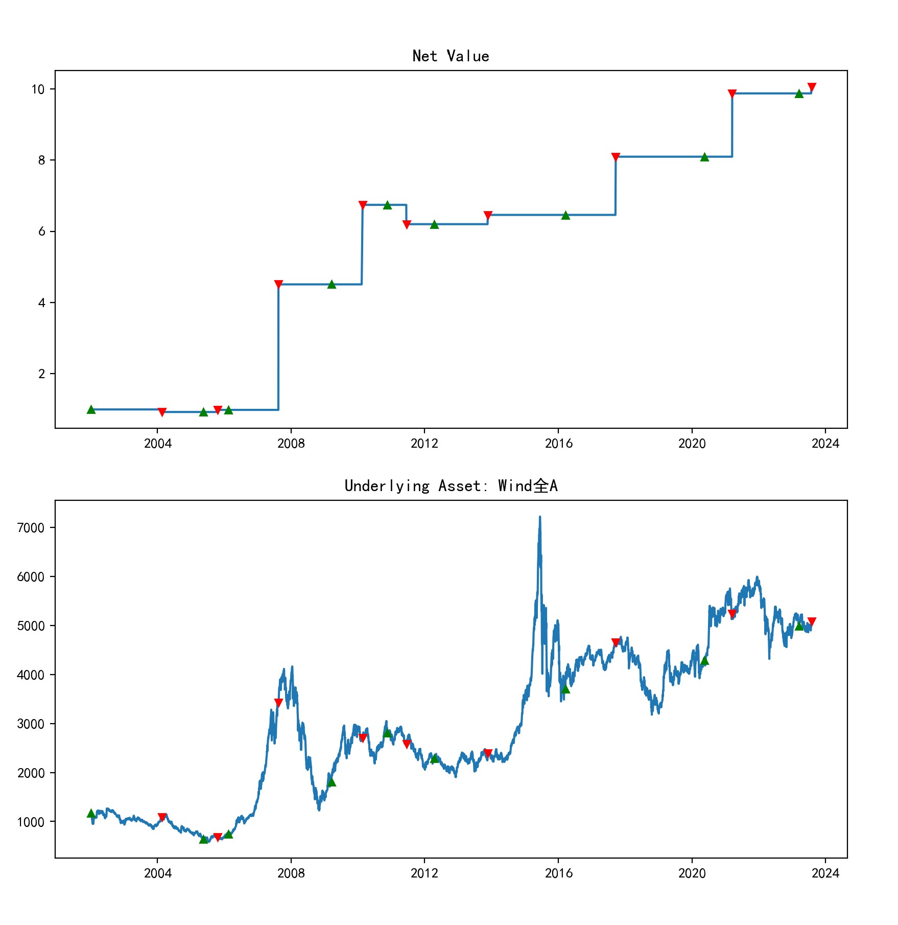 基于Feldman发表的《Buy and Hold Versus Timing Strategies: The Winner Is》,山寨了一个纯基于经济基本面的股市择时模型,并在全球多个国家的股市上进行了检测,总体看,用其做多股指的效果较佳;详情参见 《研究札记:择时策略对比》 的主帖,这里就不再赘述了。下图是在A股上则择时业绩回测: