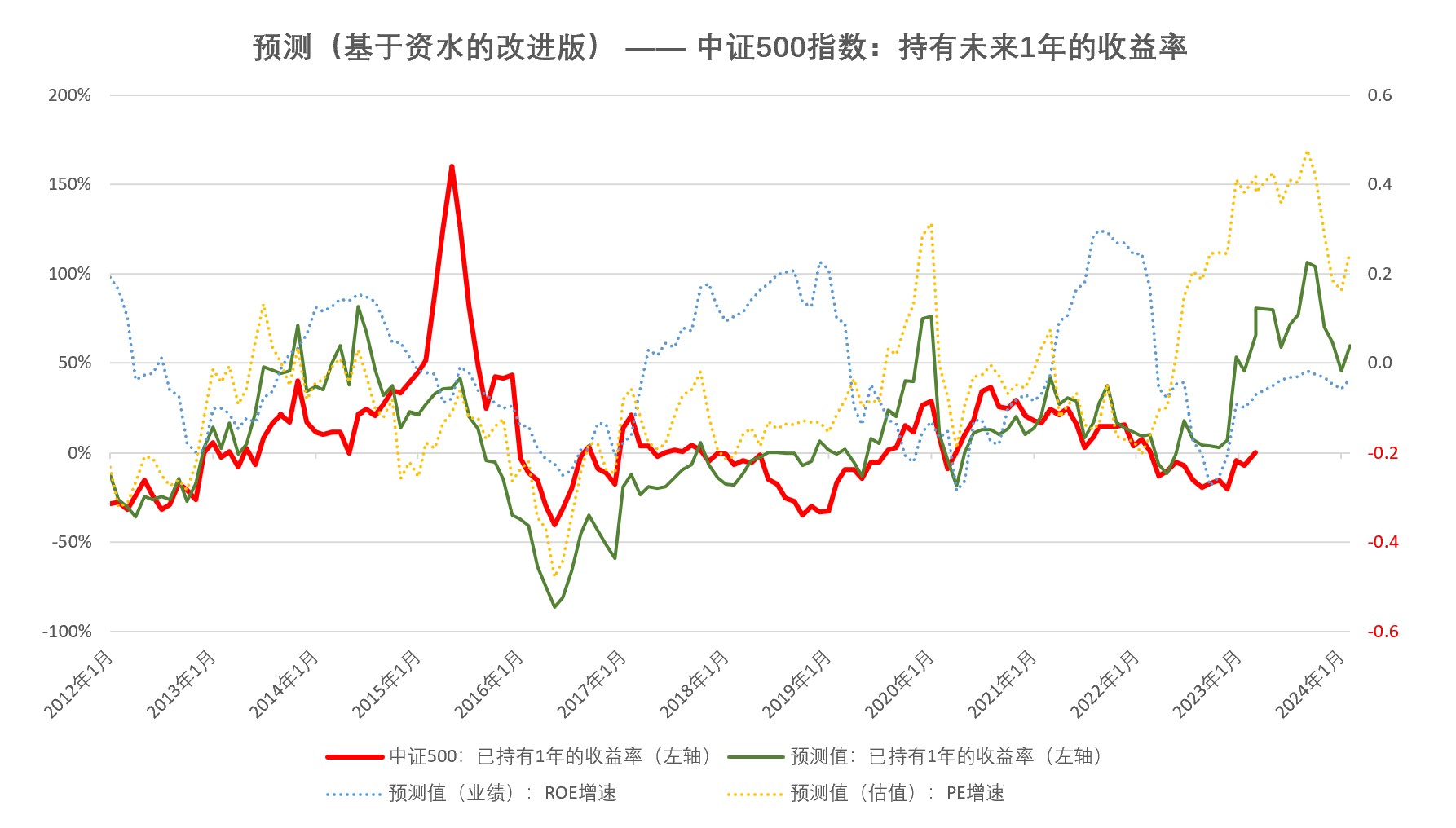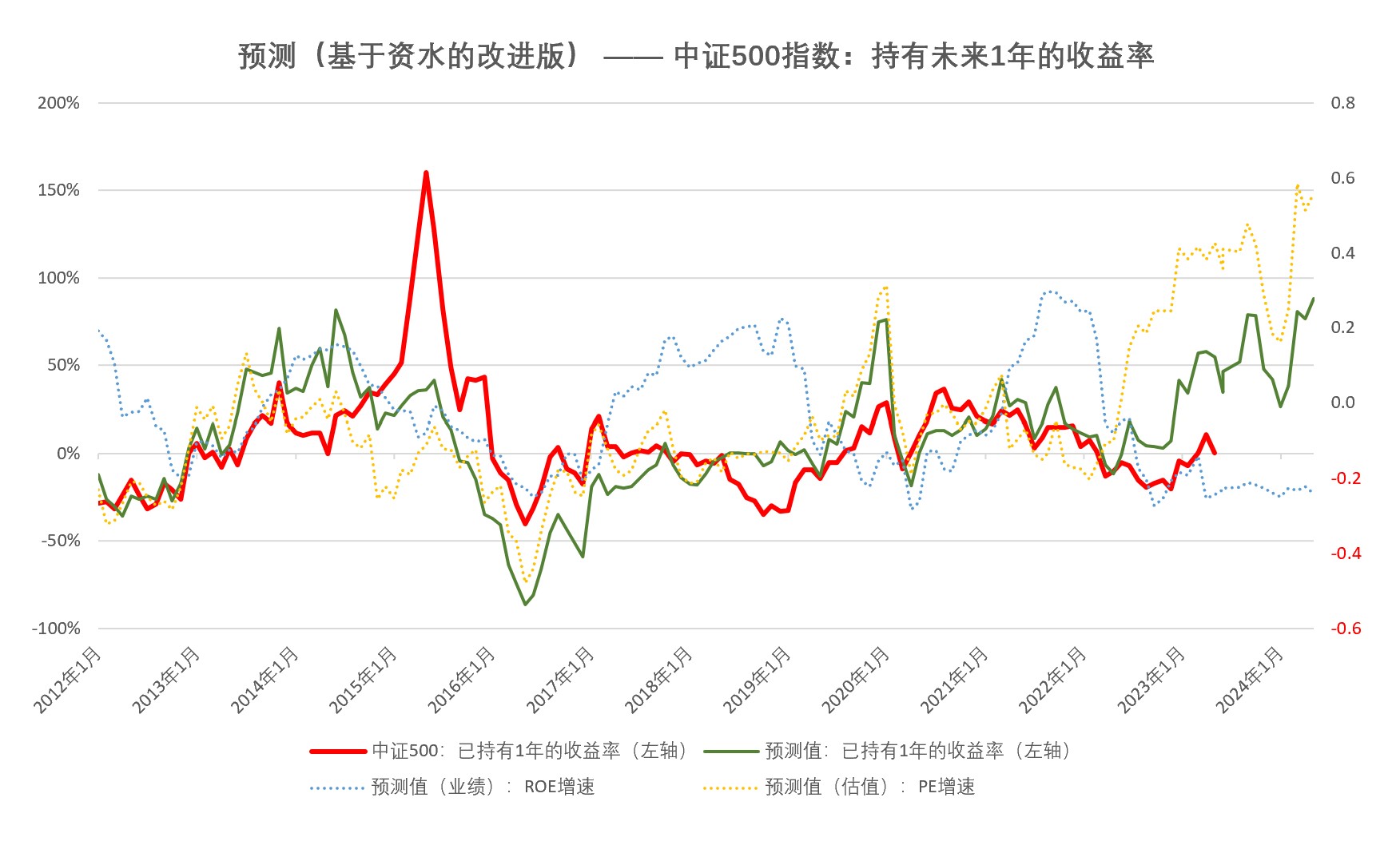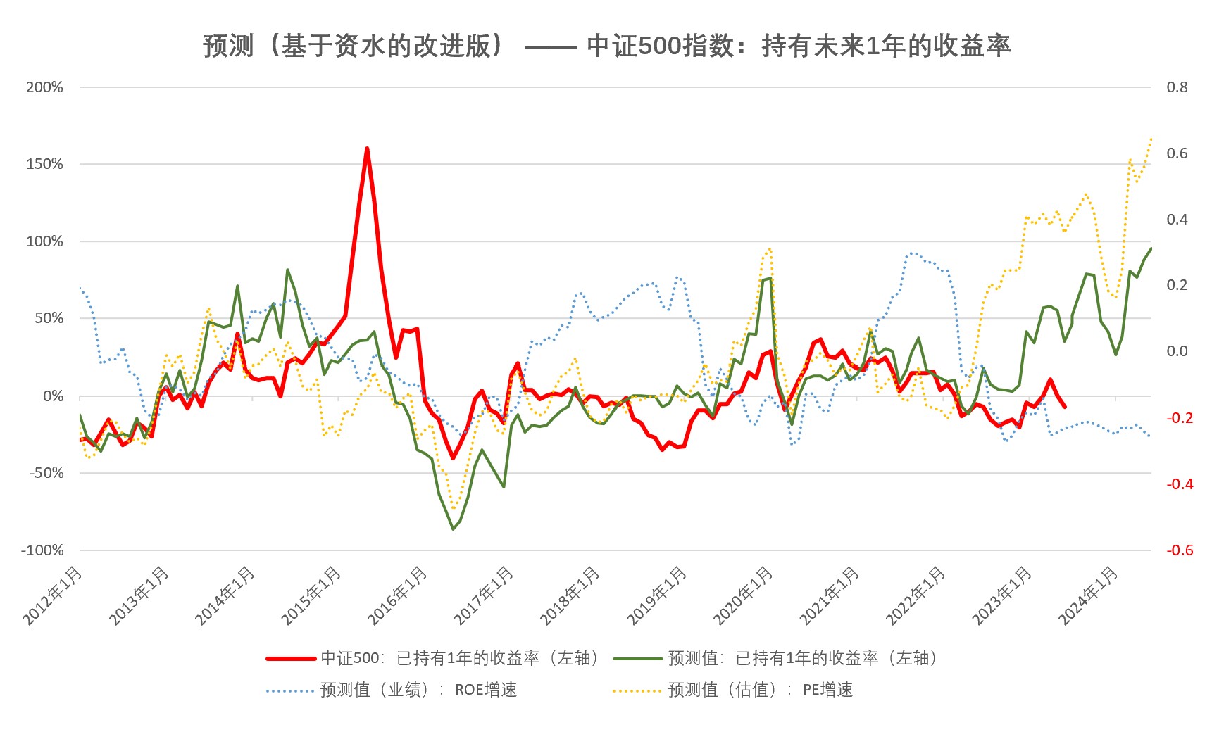 2、从中证500的未来1年收益预测看,如果资金能够入市,那么前景非常可期(第2张图)