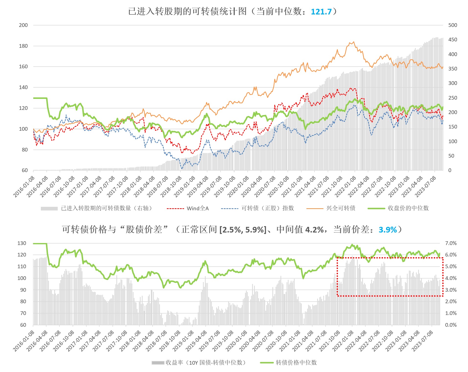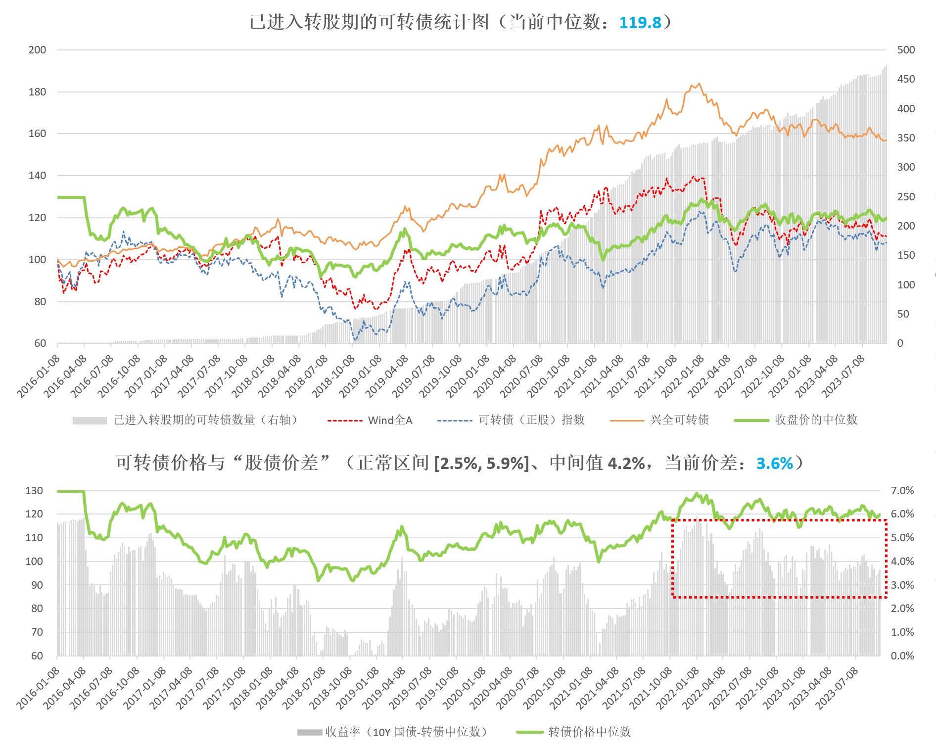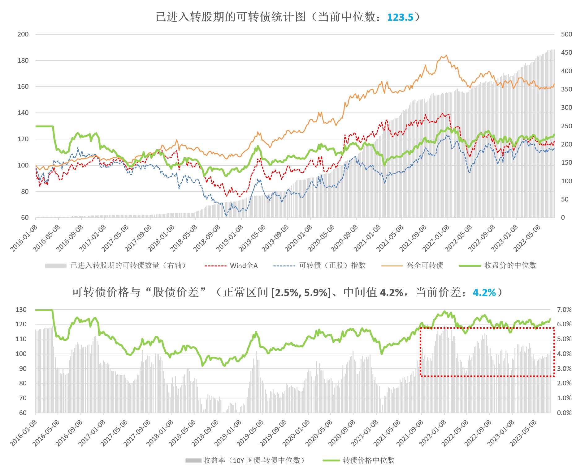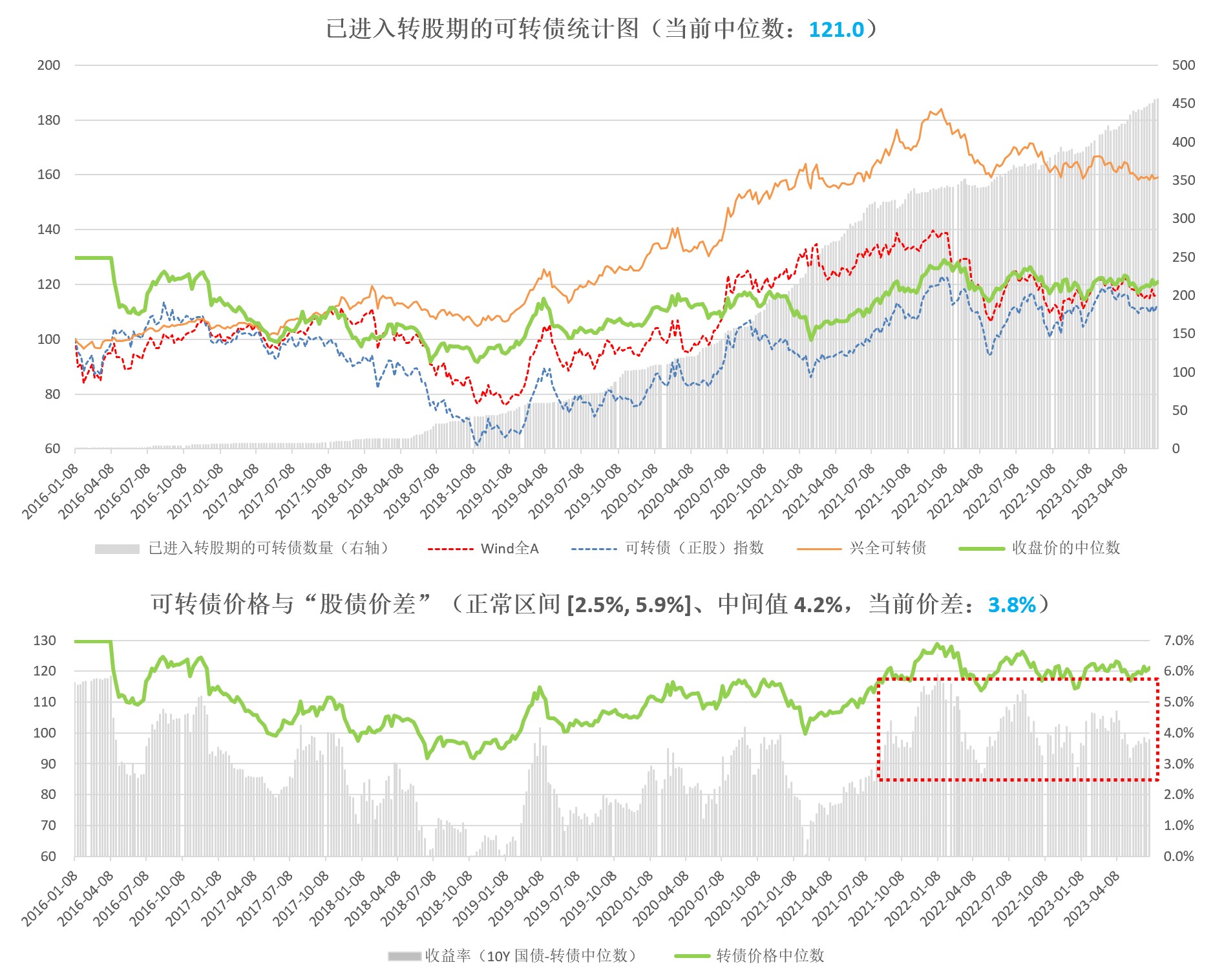 1、已进入转股期的可转债价格中位数重新回到(121.4),处于相对高位(第1张图)