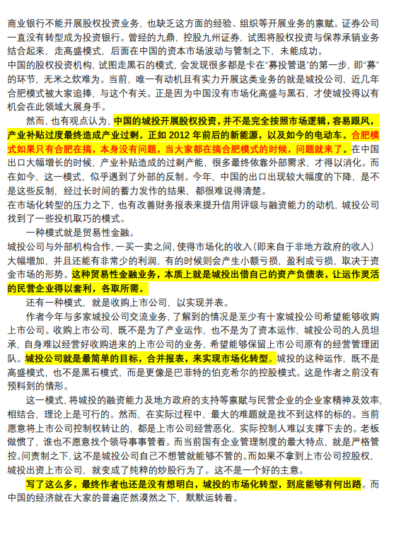 21世纪经济报道:从知情人士处获悉,山东潍坊相关部门正在要求地方城投平台提供部分涉及A股上市公司并购案例的全面材料,配合对并购相关的主体进行审计工作。潍坊城建为最早参与A股企业并购的地方城投平台。近年大环境不佳,部分被投企业因纠纷陷入更深的经营困境