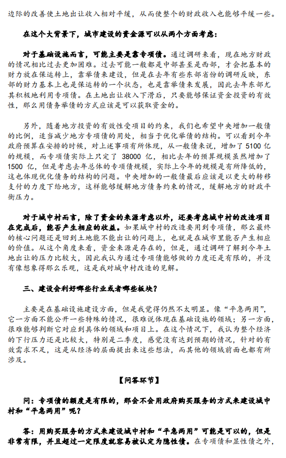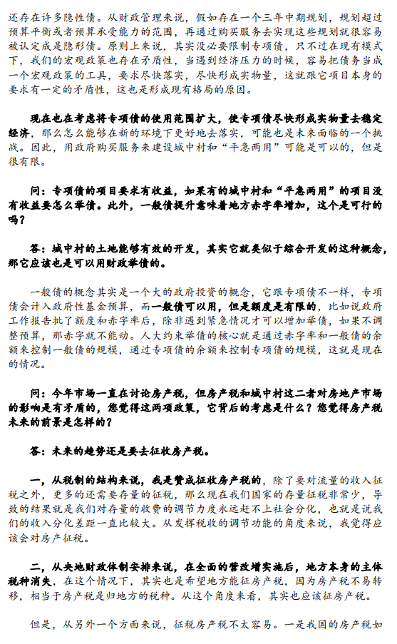 总体而言,我想起周小川行长的一句话,逆周期调控是必要的,但还是要强调一个理念——寓改革于调控之中。“子弹”是要打的。