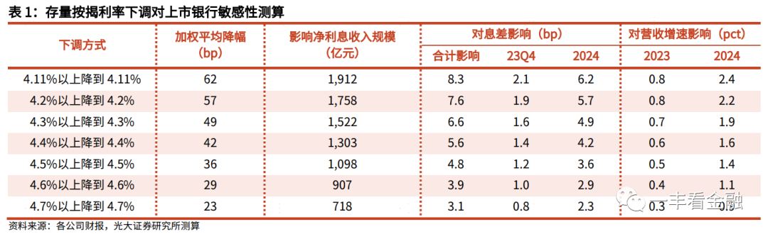 东兴证券:在上一轮地产调控阶段,银行新发放按揭贷款利率在5.5%左右;考虑贷款利率定价机制改革以来,LPR多次下调,5年期下调幅度达65BP,推算这部分存量按揭贷款利率在4.9%左右,与当前利率水平差距约77BP(根据央行最新数据,6月新发放个人住房贷款加权平均利率为4.11%)。预计银行可能采取的方式是与借款人协商调整旧合同约定的加点幅度,或者通过新发放贷款替换旧贷款。调整后贷款利率预计会参考所在城市新发放按揭贷款利率平均水平。